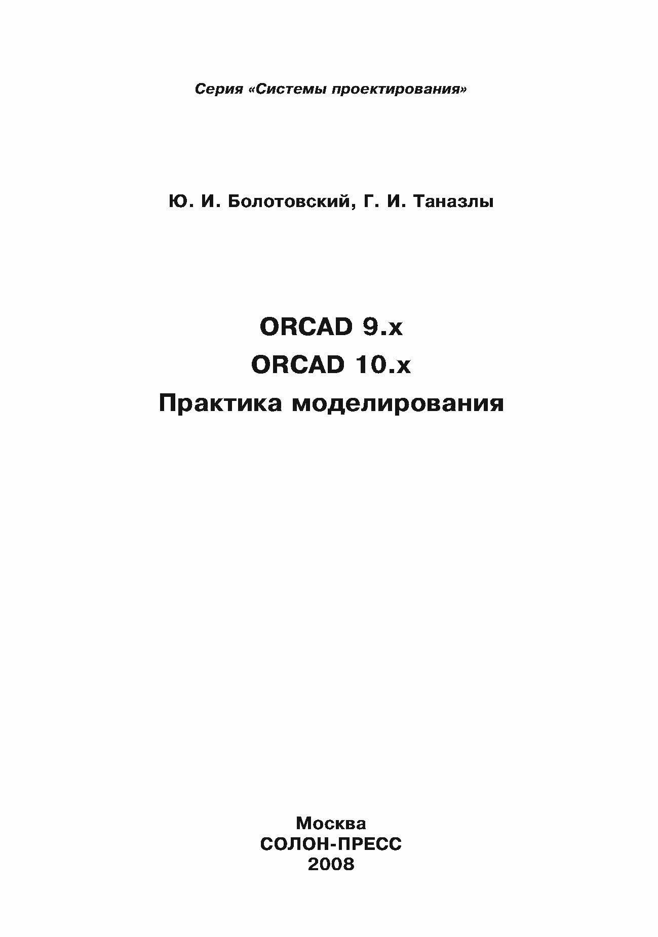 ORCAD 9.x ORCAD 10.x. Практика моделирования (Болотовский Юрий Израилевич, Таназлы Георгий Иванович); Солон-пресс, 2008