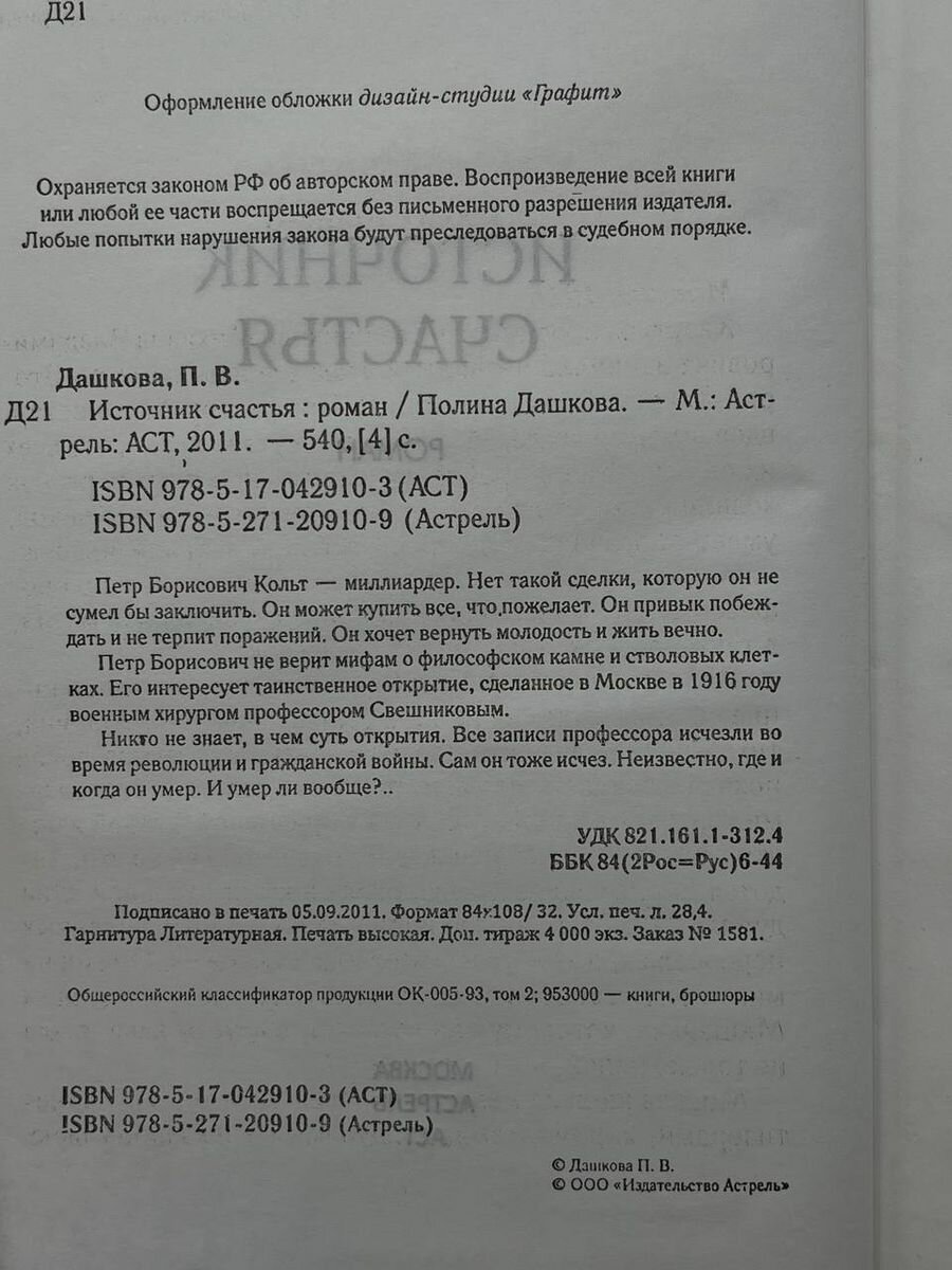Источник счастья. Книга 1 (Полина Викторовна Дашкова); АСТ, 2011