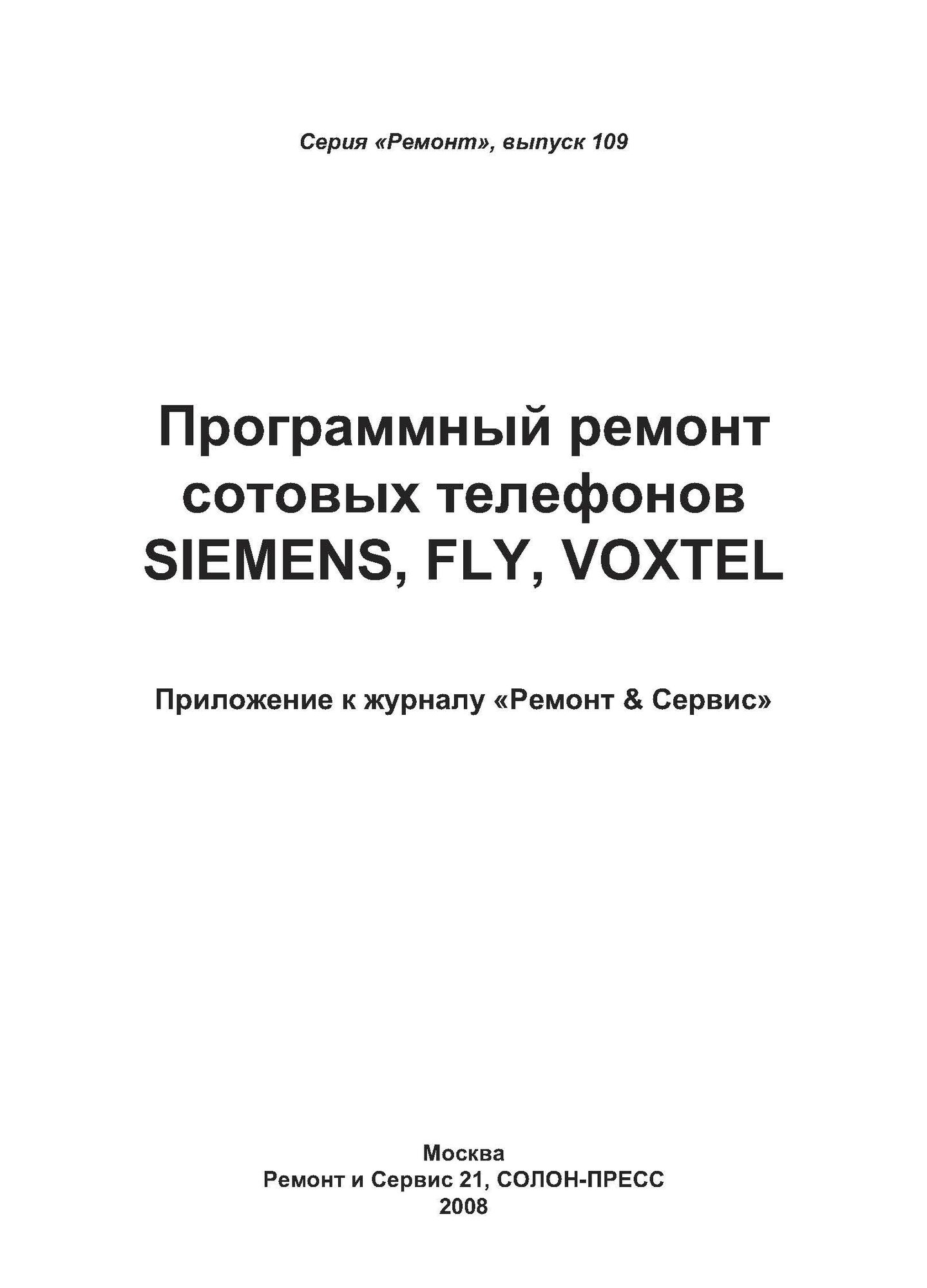 Программный ремонт сотовых телефонов SIEMENS FLY VOXTEL. Выпуск 109 (Родин А.; Тюнин Н. А.); Ремонт и Сервис XXI, Солон-Пресс, 2020