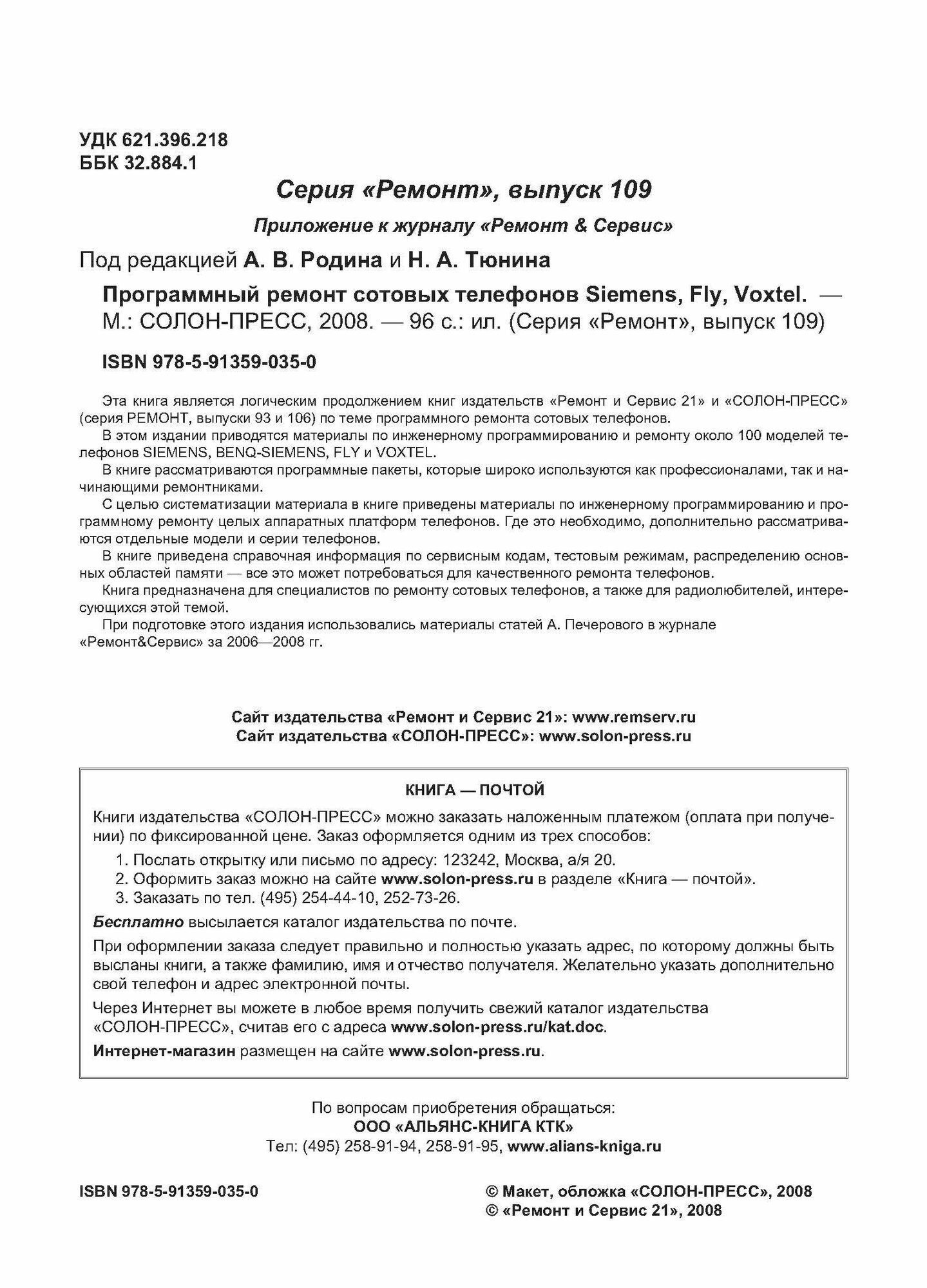 | Издатель | Ремонт и Сервис XXI, Солон-Пресс |