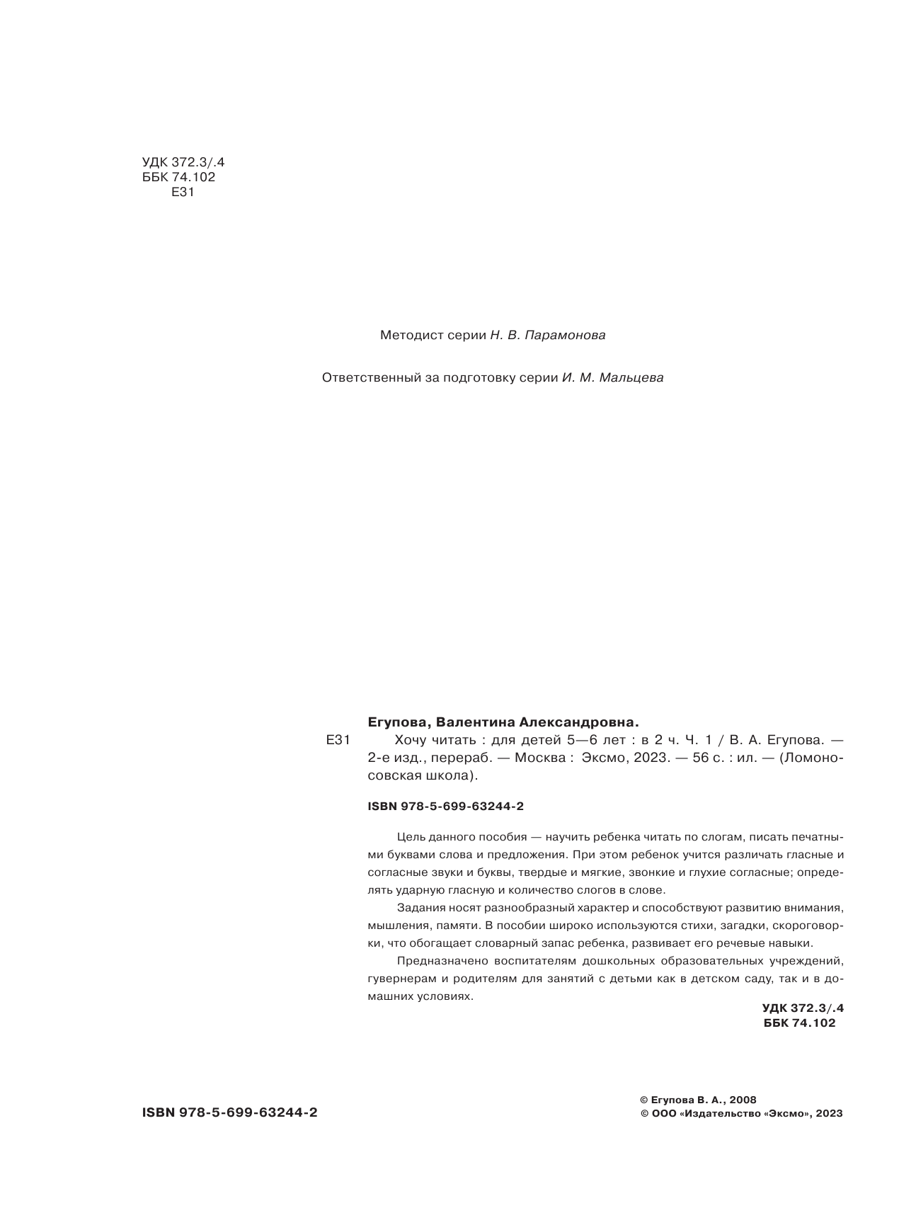 Хочу читать: для детей 5-6 лет. В 2 частях. Часть 1 (Егупова Валентина Александровна); Эксмодетство, 2022
