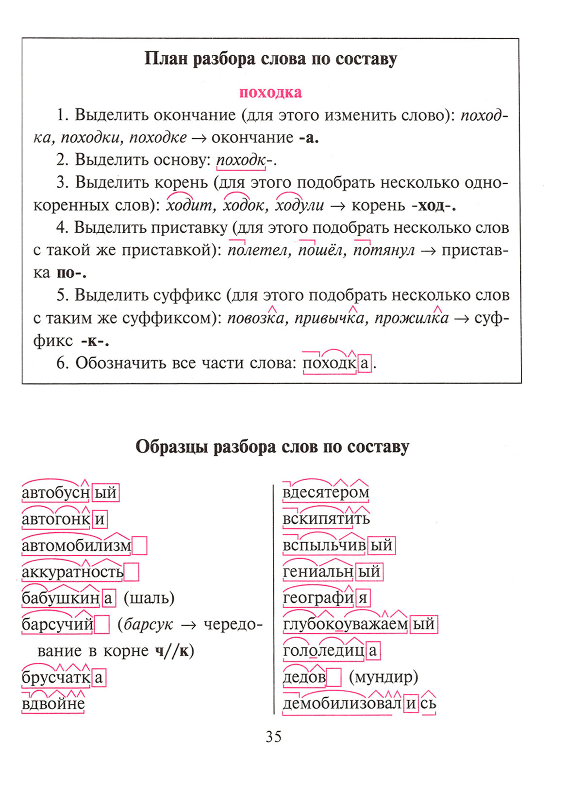 2) разбор слова по составу;