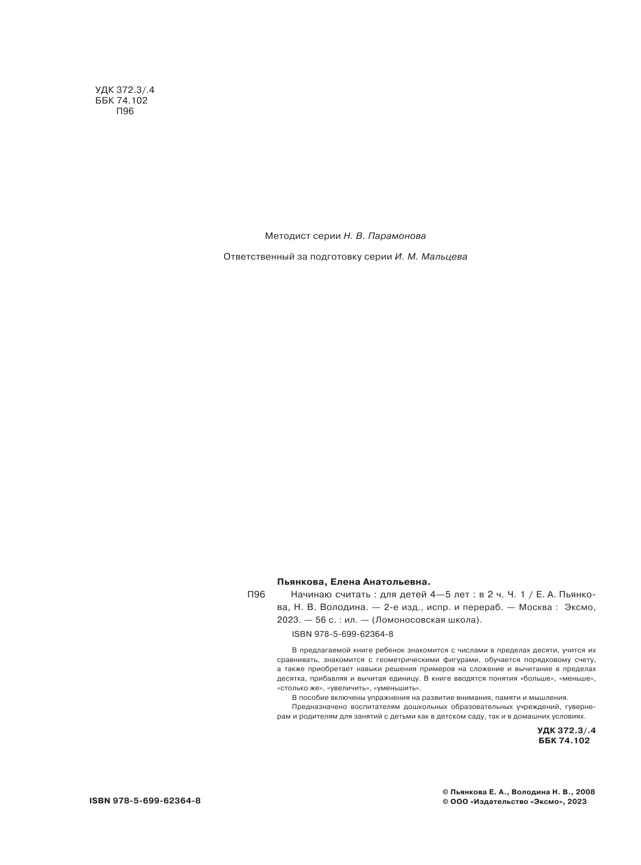 Начинаю считать: для детей 4-5 лет. В 2 частях. Часть 1 (Пьянкова Елена Анатольевна, Володина Наталия Владимировна); Эксмодетство, 2022