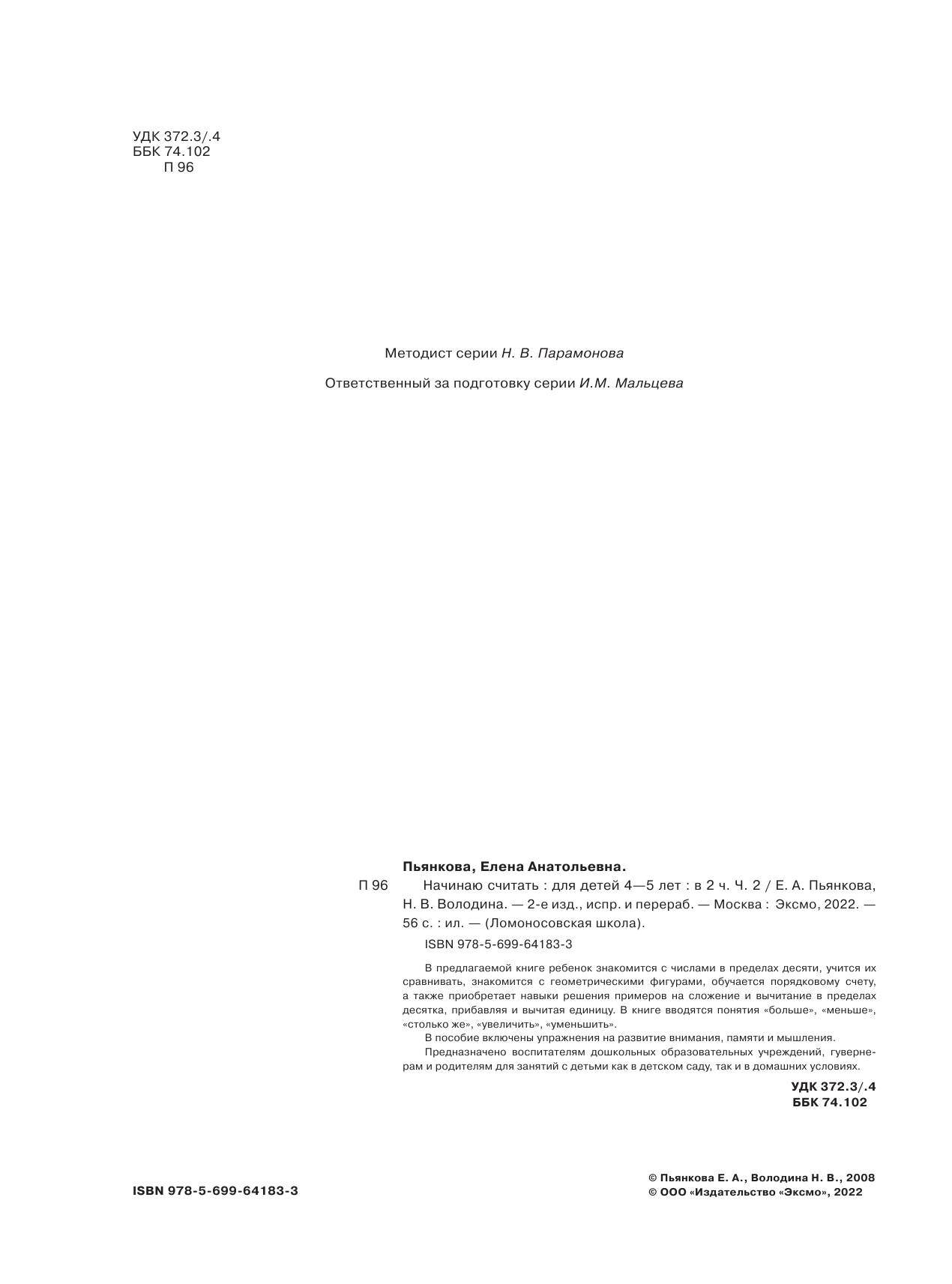 Начинаю считать: для детей 4-5 лет. В 2 частях. Часть 2 (Пьянкова Елена Анатольевна, Володина Наталия Владимировна); Эксмодетство, 2022