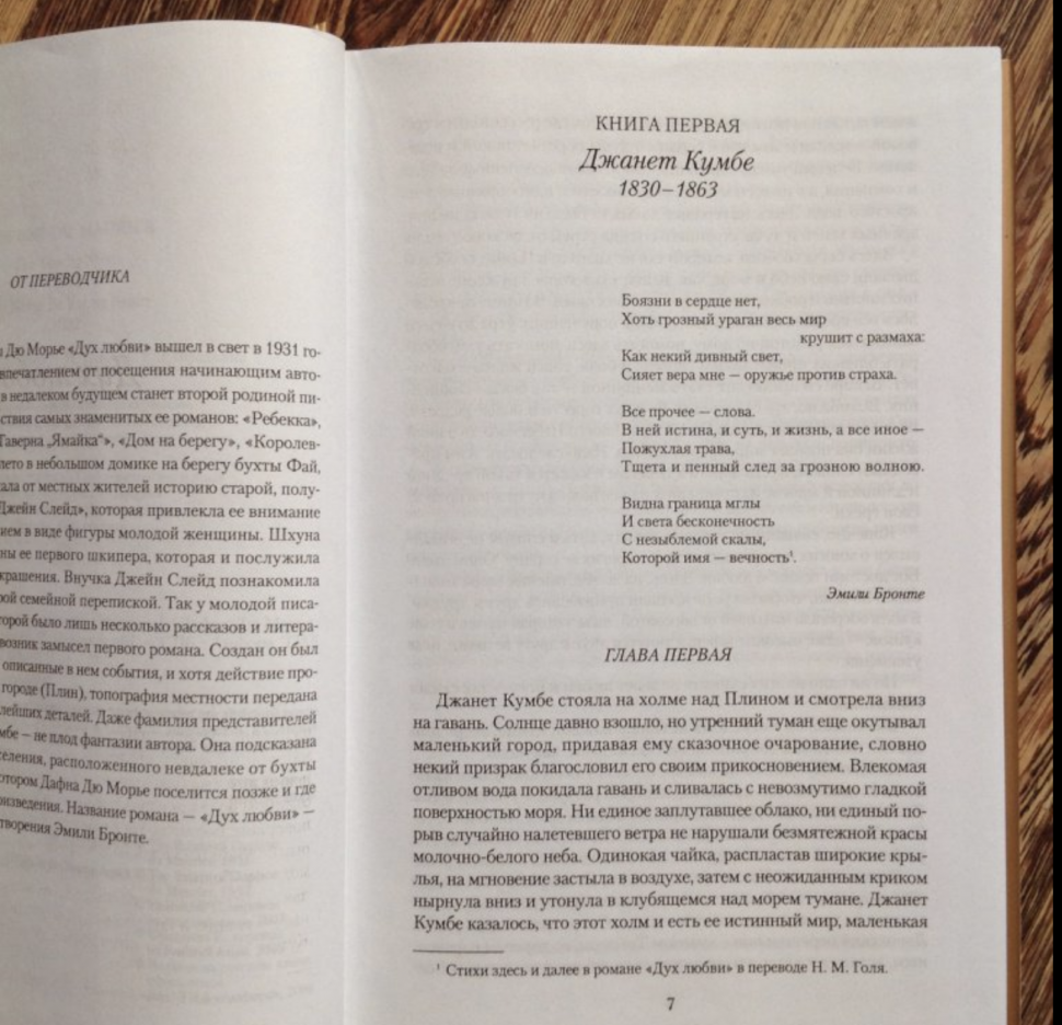 "Дух любви" - стоит узнать, что это первый роман автора, да написала она его в 24 года - это к слову о таланте. Мне понравилось. Сага о четырех поколениях семьи Кумбе, что живет в небольшом городке у моря, да владеет корабельной верфью. Джанет - чья душа рвалась к свободе и кораблям, Джозеф - явивший собой все желания и мечты матери, Кристофер - не оправдавший желаний отца и пробующий жизнь иную, Дженифер - правнучка первой главной героини, вобравшая в себя всю силу крови и родственного духа. Духа любви. Здесь есть любовь и ненависть, вера и предательство, поддержка и обман. Это роман о том, что мы не одни в этом мире - есть наше прошлое в виде родных людей, есть мы, есть и те, кто будет после нас. Но мы навечно в этой связи - невидимой и неразрывной. Это больше, чем то, что мы можем объяснить. "Мне нравятся люди, которые либо делают что-то открыто, либо молчат." / "Лично я, конечно, не знаю, но, если бы я кого-то любил, а меня бросили, тошнить меня бы не стало. Я бы решил, что все в жизни напрасно и бессмысленно, к чему тогда работать, думать. И все же надо идти вперед, что бы ни случилось."
