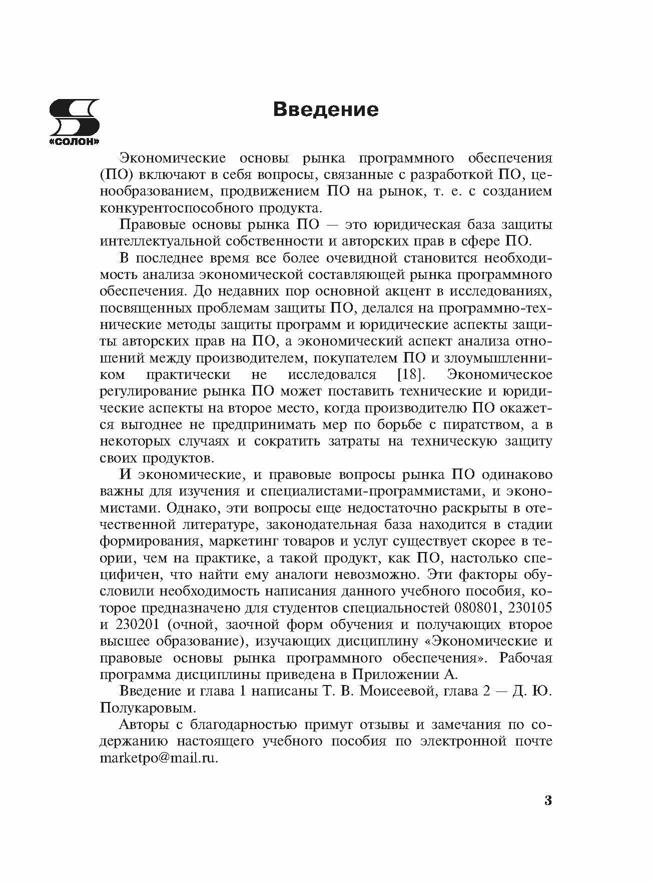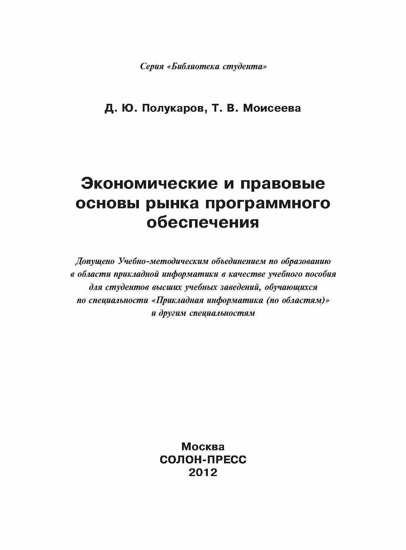 Экономические и правовые основы рынка программного обеспечения. Учебное пособие (Полукаров Данил Юрьевич, Моисеева Татьяна Владимировна); Солон-пресс, 2012