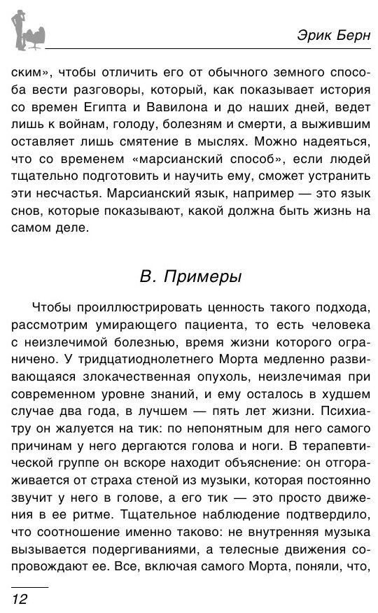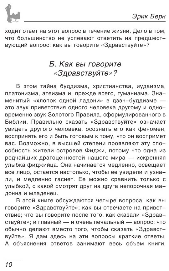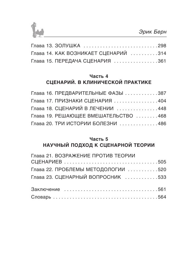 Всемирно известный психолог Эрик Берн - создатель трансакционного анализа и основанной на нем знаменитой системы психологической помощи, позволяющей людям самостоятельно решать проблемы, возникающие во взаимоотношениях с окружающими. Эта книга, успешно выдержавшая множество переизданий и выпущенная многомиллионным тиражом на многих языках, посвящена тому, чтобы научить читателя профессионально анализировать нюансы своего общения, а также помочь избавиться от многих поведенческих стереотипов и комплексов, мешающих в повседневной жизни. Первоначально данная работа задумывалась как продвинутый учебник психоанализа, однако в итоге автор сумел изложить ее простым и доступным каждому языком с использованием ярких и остроумных образов.