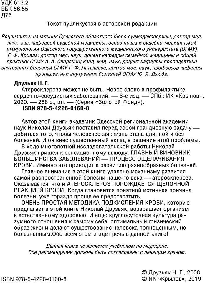 Атеросклероза может не быть. Новое слово в профилактике сердечно-сосудистых заболеваний (Друзьяк Николай Григорьевич); Крылов, 2021