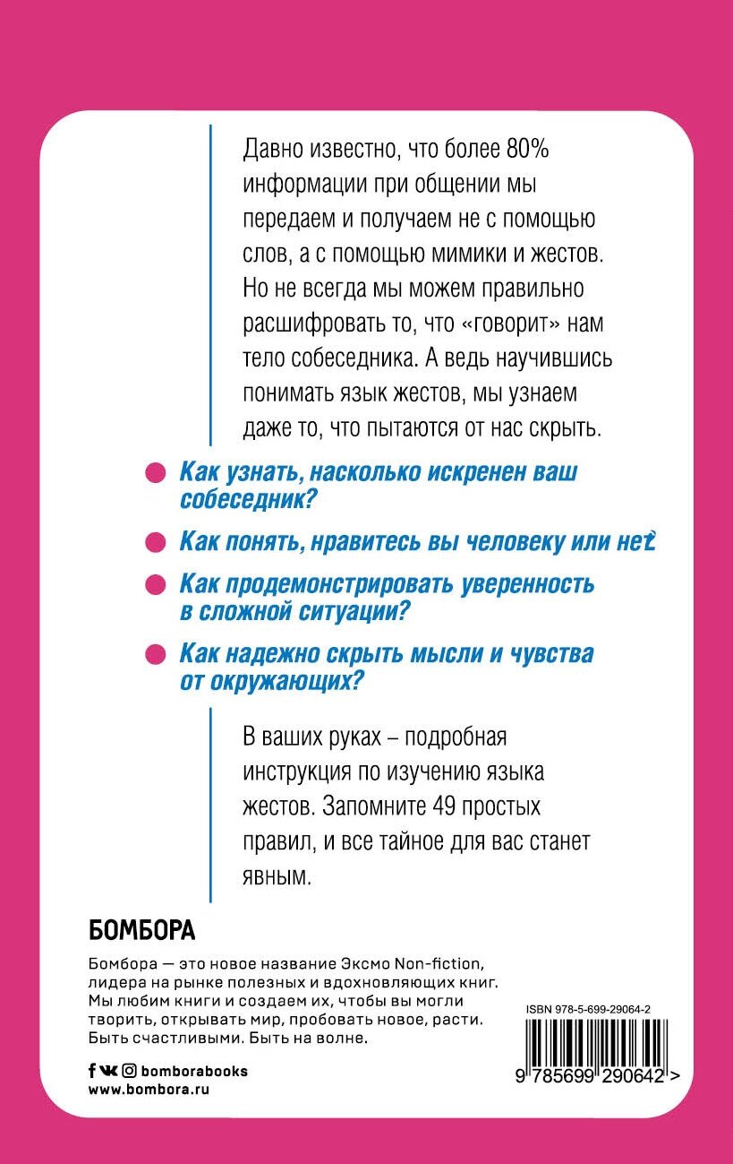Можно ли узнать настроение человека по его внешнему виду? Можно ли определить, какое он принял решение, если не было сказано ни слова? Можно ли обмануть так, чтобы никто этого не заметил, или уличить человека в обмане без детектора лжи? Можно, если вы умеете читать тайный язык жестов!