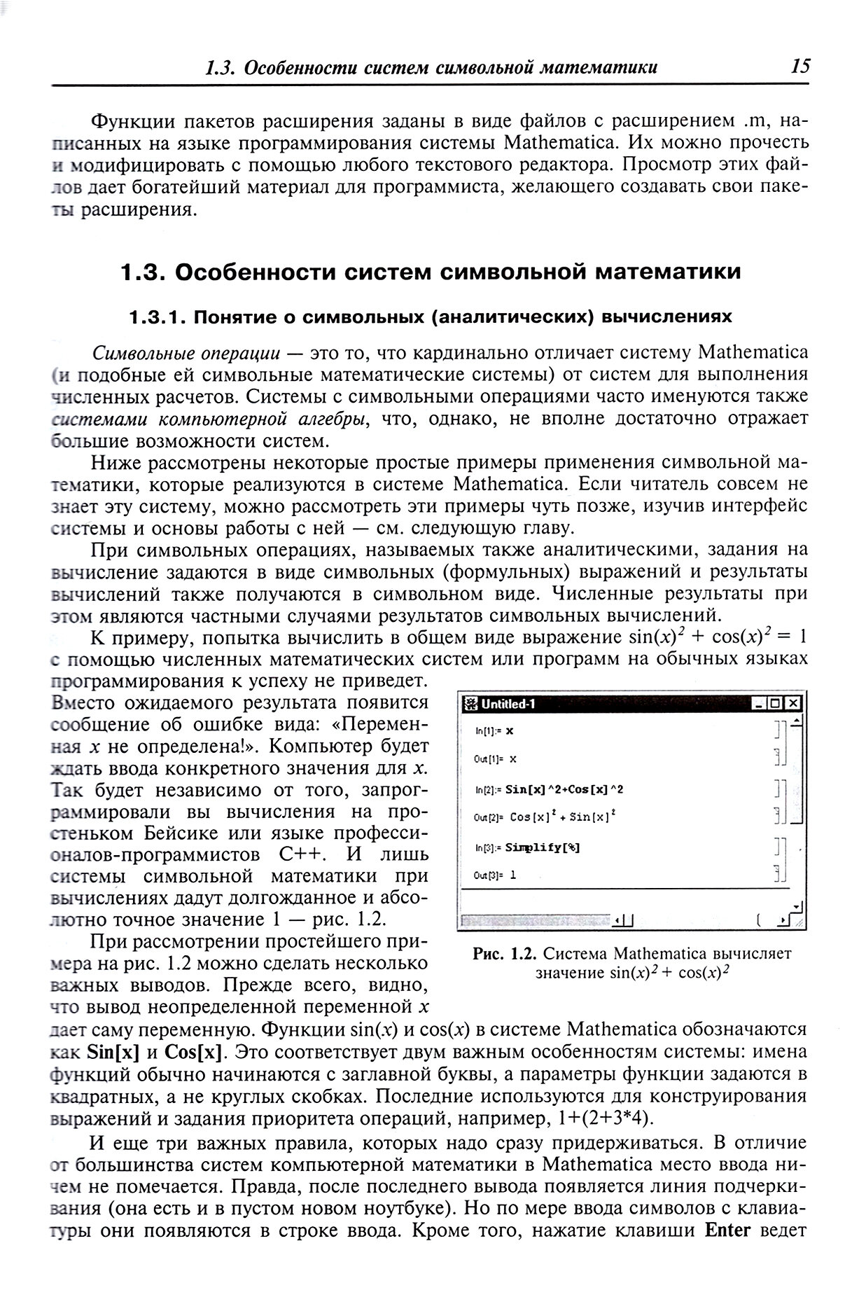 В монографии впервые описано применение трех последних версий системы Mathematica 5.1, 5.2 и 6.0 - мирового лидера среди универсальных систем компьютерной математики. Особое внимание уделено описанию возможностей новейшей системы Mathematica 6.0, в ядро которой добавлено около тысячи новых функций. Впервые описаны средства динамической оценки переменных, расширенной визуализации любых видов вычислений и динамического интерфейса ноутбуков (документов). Приведены многие сотни практических примеров применения системы в математических и научно-технических расчетах. Описаны внешние пакеты расширения по обработке сигналов и изображений и технике применения вейвлетов. Для всех пользователей ПК, применяющих математические методы в образовании, в инженерной практике и в научных расчетах.