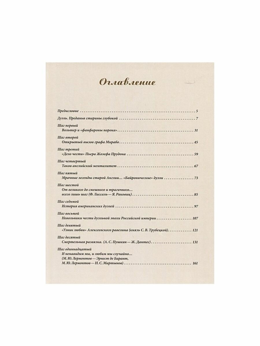 В истории легендарных дуэлей Вольтера, Мирабо, Байрона, Прудона, Лассаля, Гамильтона, Герцена, Пушкина, Лермонтова, Трубецкого, Столыпина, Набокова, Брюсова, Белого, Волошина, Гумилева и многих других-политиков, ученых, писателей, поэтов за каждым вызовом, уколом шпаги и выстрелом из дуэльного пистолета перед читателем предстает не только открытая защита Чести и Любви с оружием в руках, а подчас драма и трагедия оскорбленных высоких чувств. В повествовании о жизни и дуэлях героев этой книги читатель вновь для себя откроет истинные человеческие ценности - благородство взаимоотношений и личное достоинство, честь и мужская доблесть, дружба и любовь, без которых в современном обществе нравственное здоровье и процветание невозможны.