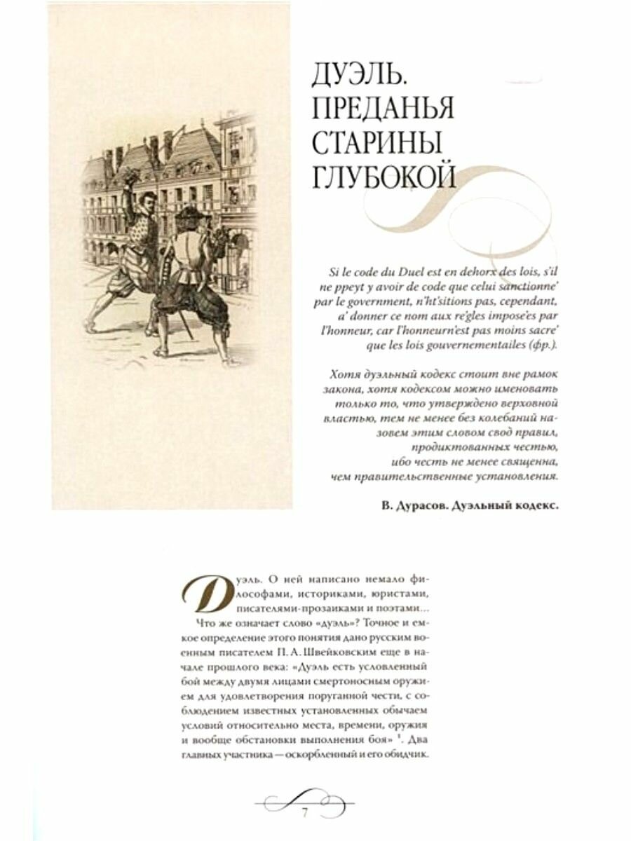 Великолепное издание. Давно мечтала увидеть в продаже такое, потому что оно может быть отличным подарком для мальчиков, юношей и мужчин, интересующихся историей оружия, в частности в контексте дуэлей. Это масштабнейшая энциклопедия, огромный плюс которой, как мне кажется, состоит в том, что ее автор не стал концентрироваться чисто на истории дуэлей, происходивших в разное время в России – как во времена жесткого их преследования среди дворян (вплоть до смертной казни), так и во времена более лояльного отношения к ним, но и очень подробно рассказывает о дуэлях, в те или иные моменты истории потрясших мировое сообщество. Честно сказать, узнаешь множество поразительных фактов о многих известных людях. Оказывается, что о многих их дуэлях просто умалчивали современники и потомки и они не стали достоянием широкой общественности. Так, например, среди таких людей можно упомянуть знаменитого Микеланджело. Считаю, что это просто великолепная книга.