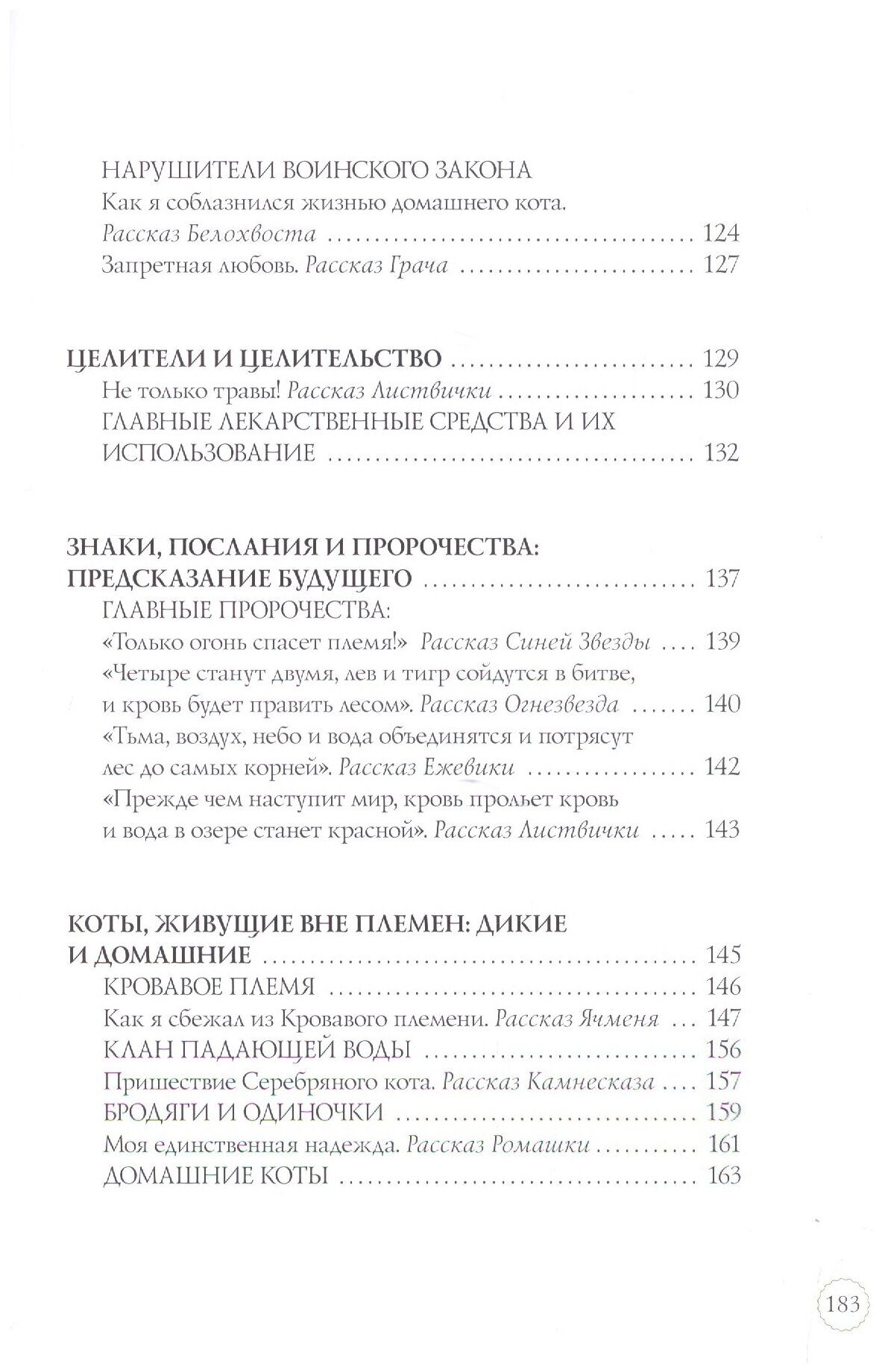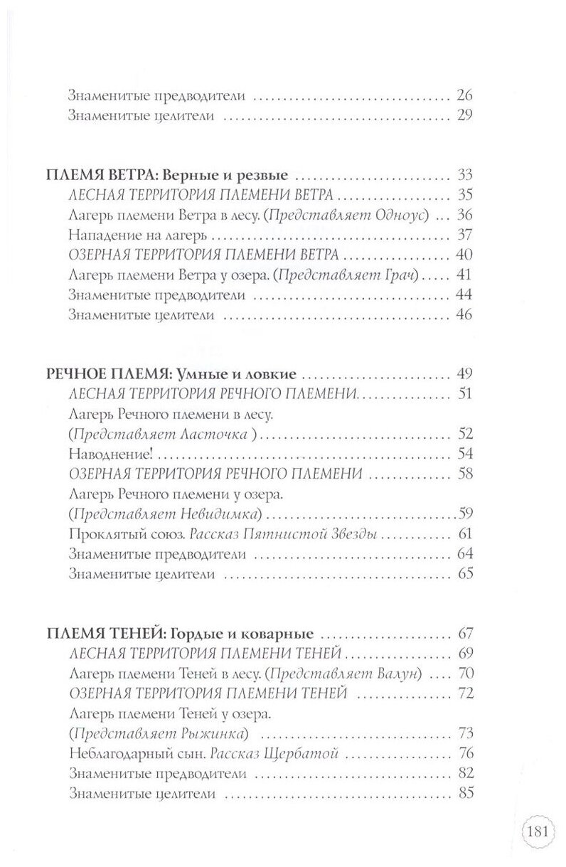 В книге рассказывается о племенах диких котов об их традициях и истории, а также о каждом персонаже серии. Книга поможет тем, кто прочел не все серии или начал читать не по порядку. -