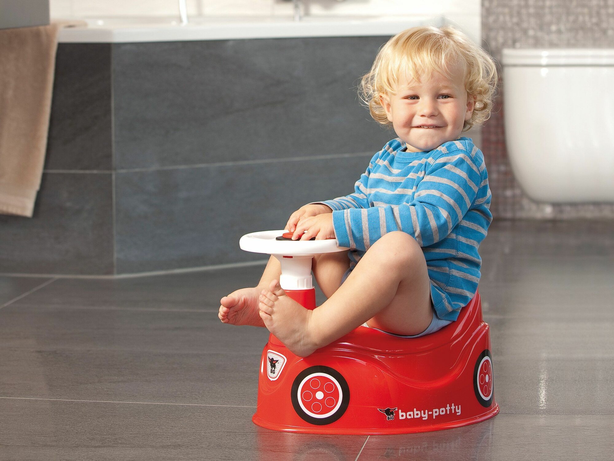 Детский горшок BIG с рулем - идеальный способ превратить приучение к данному предмету гигиены в веселое, интересное и увлекательное мероприятие. Корпус, выполненный в виде игрушечного автомобиля, непременно понравится каждому мальчишке, мечтающему стать крутым гонщиком: руль, расположенный спереди, крутится, как настоящий, и имеет функционирующую кнопку клаксона. Благодаря полностью разборной конструкции, горшок невероятно прост в эксплуатации и уходе: качественный износостойкий нетоксичный пластик легко моется, моментально сохнет и практически в любой момент готов снова «прийти» на помощь маленькому непоседе.