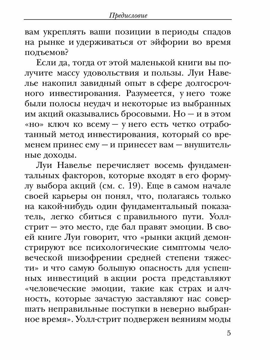 Луи Навелье является одним из самых уважаемых инвесторов нашего времени, который уже почти 30 лет он делает на акциях баснословные прибыли и опережает рынок в 4 раза. И вот теперь он расскажет о своем фирменном стиле инвестирования и вам. Его книга откроет вам секрет создания богатства в сложных условиях современного рынка - и докажет, что для достижения инвестиционного успеха вам вовсе не обязательно платить грабительские комиссионные брокерам.