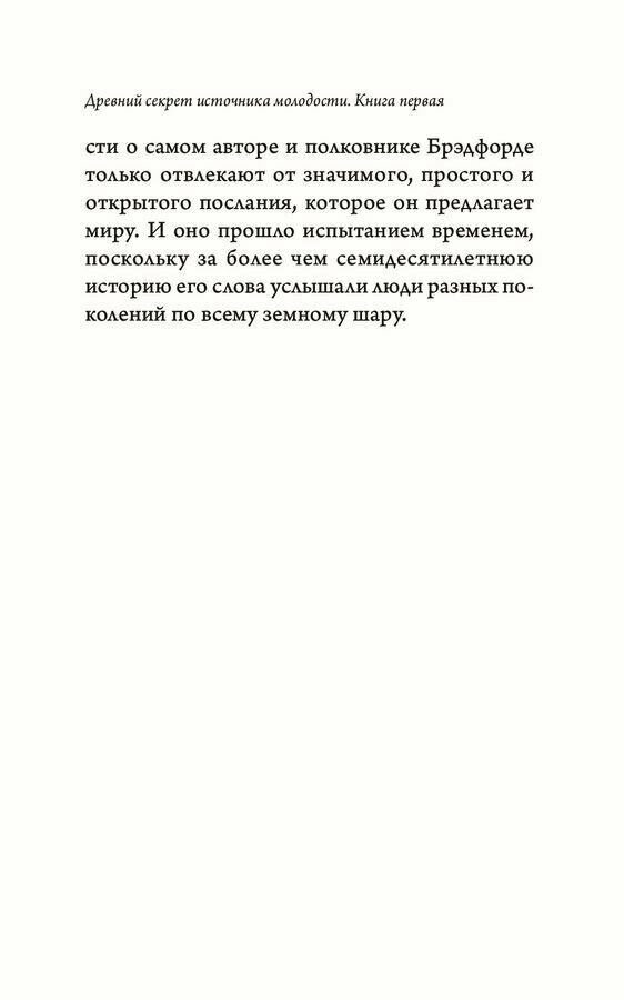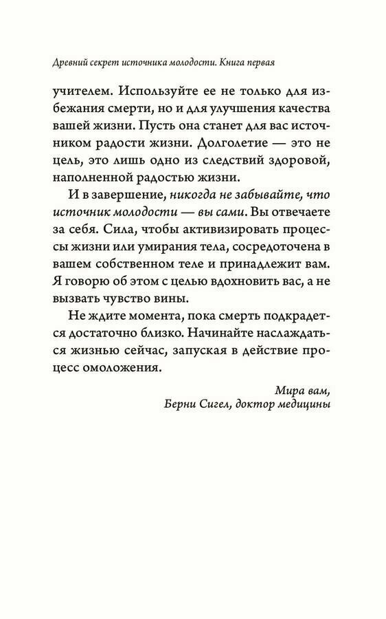 Древний секрет источника молодости заключается в умении использовать и направлять свою энергию на возрождение, а не на разрушение. Пять достаточно простых в исполнении ритуалов могут помочь оздоровить свой организм и успокоить и восстановить свою нервную систему. Книга полезная, многое покажется простейшим и понятным.
