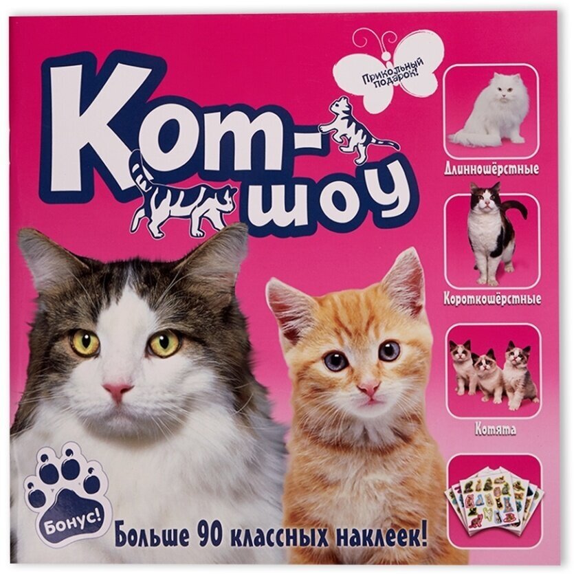 Красивое дополнение к подарку. Много наклеек на одну тему в разных вариантах: домашние и дикие кошки, забавные мультяшные коты. Наклейки клеются куда угодно, так как места в книге для них нет. Информации мало, она скорее дополняет наклейки, а не наоборот. В магазине цена гораздо выше.