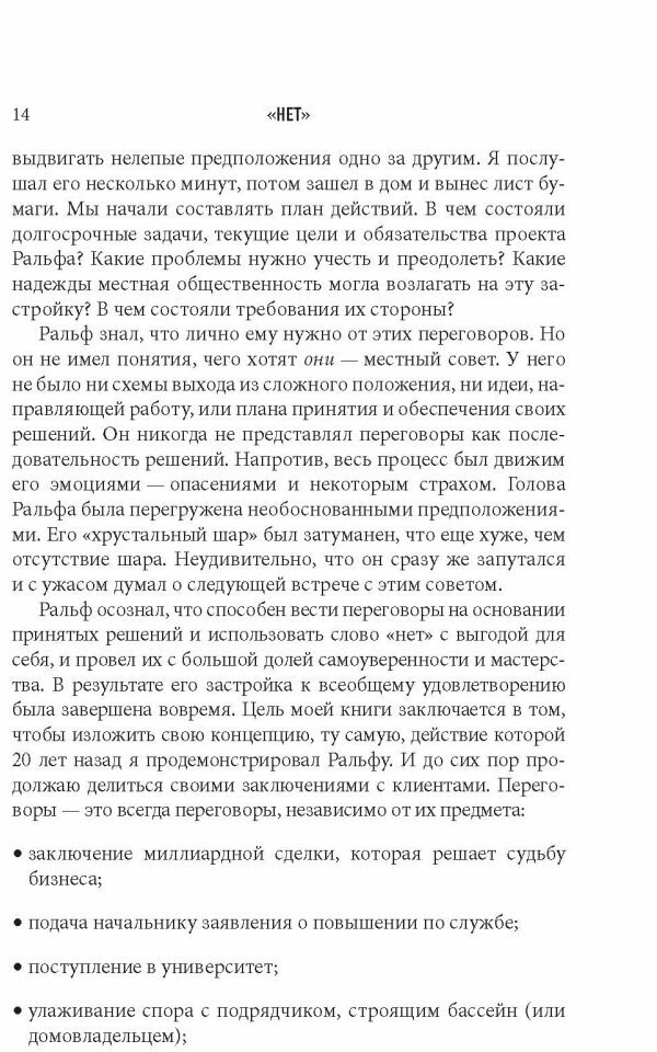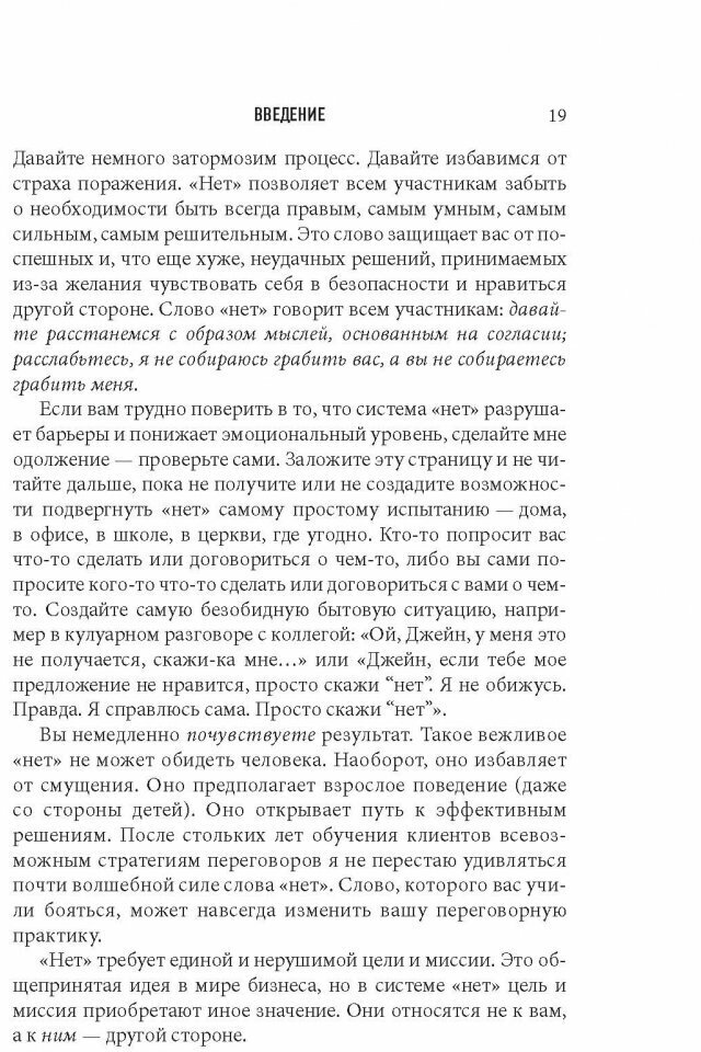 ."Нет" - самый эффективный инструмент в арсенале переговорных методик, позволяющий пресечь бесплодные дискуссии и отбросить ложные предположения и ненужные компромиссы. Прочитав эту книгу, вы освоите уникальную систему подготовки, планирования и ведения переговоров. Вы узнаете: