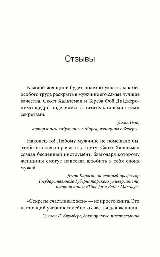 Эту книгу следовало бы назвать "Искусство приручения мужей". Оказывается, даже столь странное и непредсказуемое существо, как мужчина, поддается дрессировке и способно стать совсем ручным. Не верите? Читайте "Секреты счастливых жен" - новый бестселлер доктора Хальтсмана. Не нужно тратить годы на попытки понять, что творится в голове вашего мужа. К черту разочарования и ссоры! Доктор Хальтсман любит женщин и, посмеиваясь, выдает им сокровенные тайны мужской психологии. Его ироничные и мудрые советы помогут вам научить любимого мужчину каждый день дарить вам счастье.
