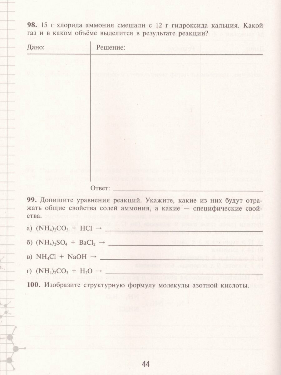 Рабочая тетрадь по химии Габрусевой - это прекрасная подготовка к экзаменам.В ней содержатся задания на основе пройденного материала,тесты для подготовки к ГИА,а также задачи и ответы к ним для самопроверки!Советую приобрести эту тетрадь, тем кто будет поступать в институт,связанный с химией или биологией.