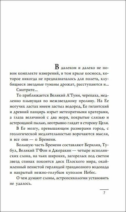 Это Великий А`Туин, Вселенская Черепаха, которая бороздит безбрежный космос. Это четыре слона, которые держат на спинах Плоский мир. А это Ринсвинд, самый трусливый волшебник на Диске, и Двацветок, первый турист Плоского мира. Неисчислимые тролли, драконы, волки и Смерть (одна штука) поджидают их в скитаниях по дотоле неведомой нам сказочной вселенной.