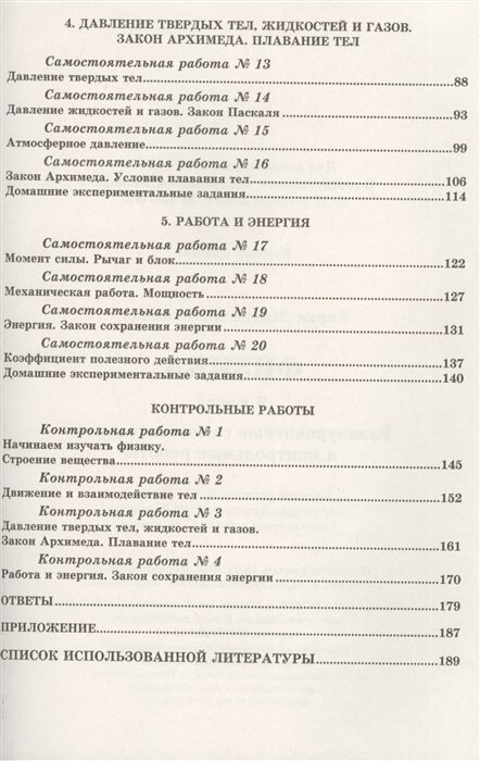 5. Давление твердых тел, жидкостей и газов (5 самостоятельных работ, домашние экспериментальные задания, 1 контрольная).