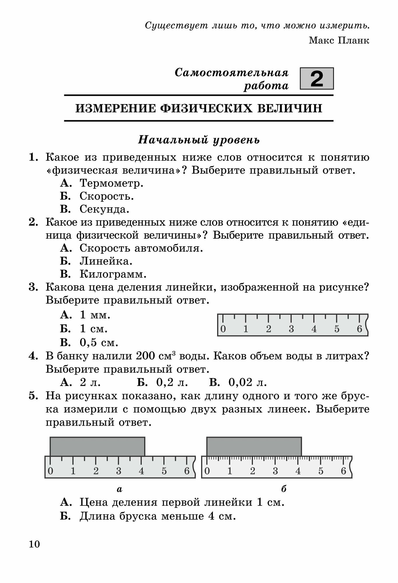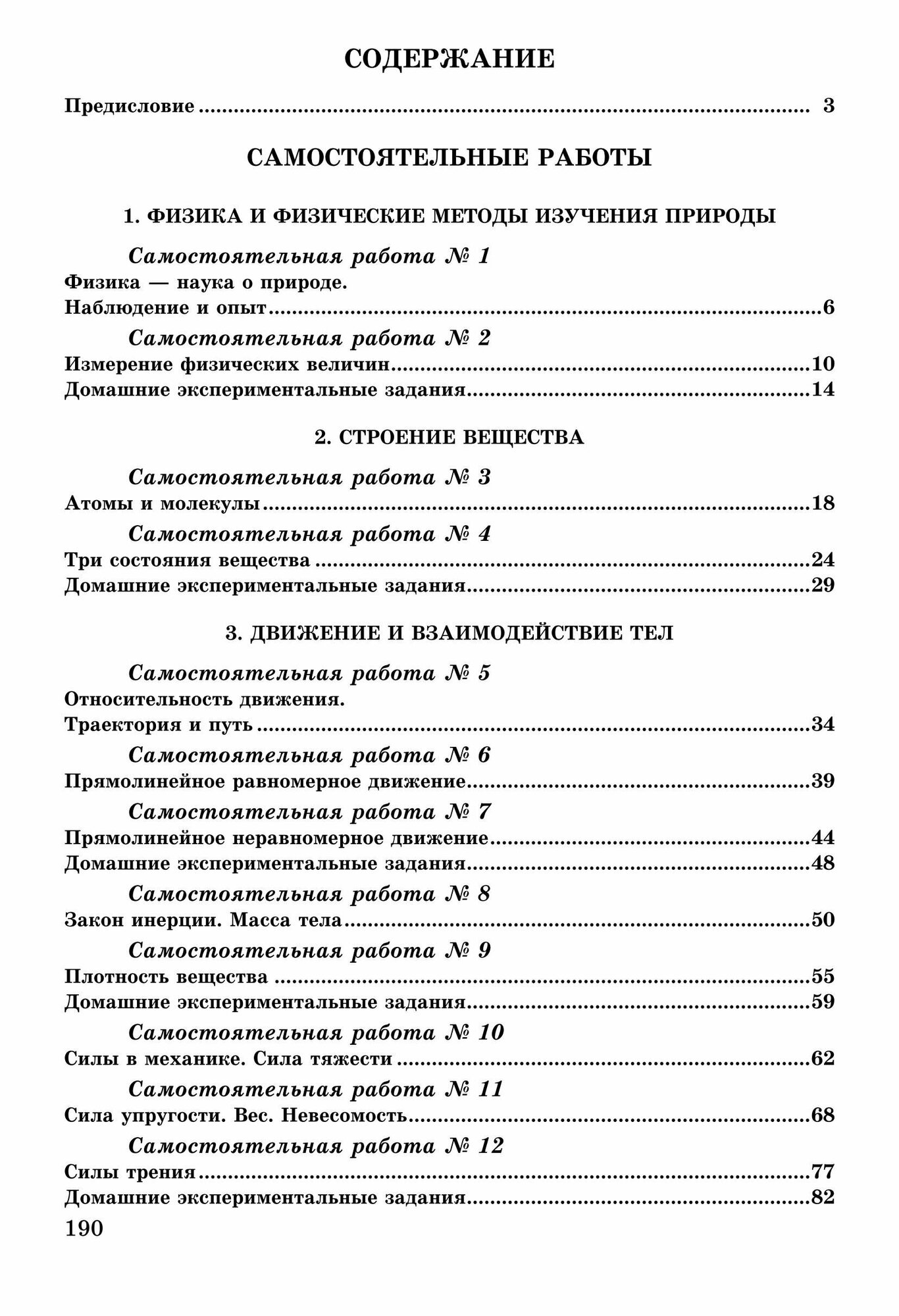 Книга содержит самостоятельные и контрольные работы по всем важнейшим темам курса физики 7 класса и предназначена для текущего контроля знаний учащихся. Работы состоят из нескольких вариантов четырех уровней сложности (начальный уровень, средний уровень, достаточный уровень и высокий уровень).