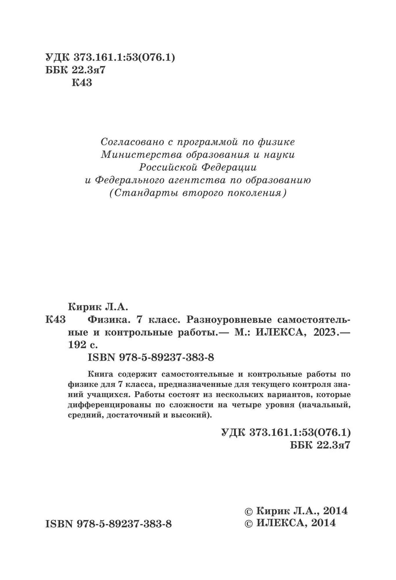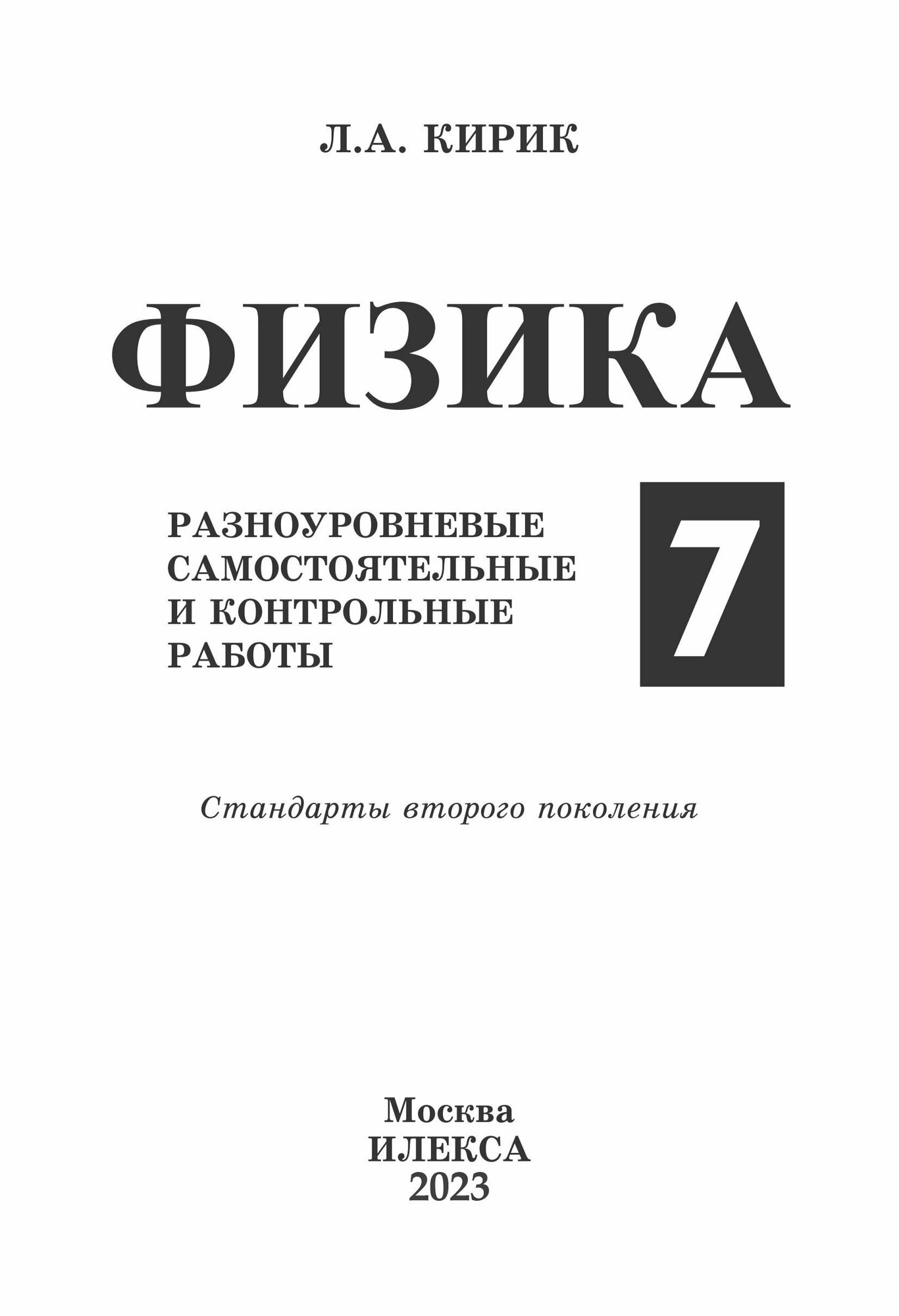 Физика. 7 класс. Разноуровневые самостоятельные и контрольные работы. (Кирик Леонид Анатольевич); Илекса, 2022