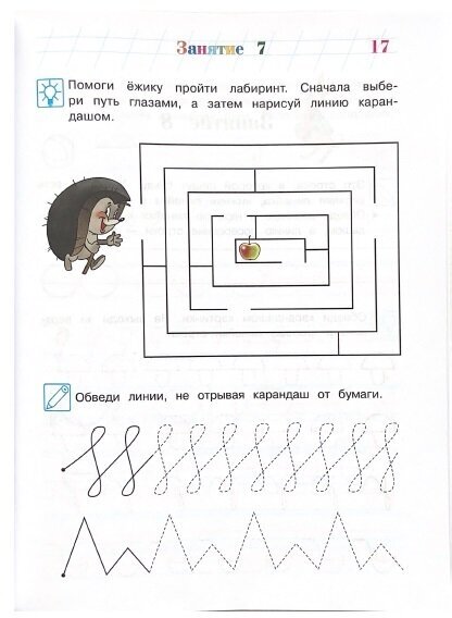 В школе рекомендовали не заниматься самодеятельностью и самим не учить ребенка писать до школы. Но для приобретения навыков это пособие очень пригодилось.Все узоры имеют элиметы прописных букв. Ребенок не замечая тренерует руку. Моей дочке книжка сама по себе очень нравиться. занимается сама, даже напоминать не надо.