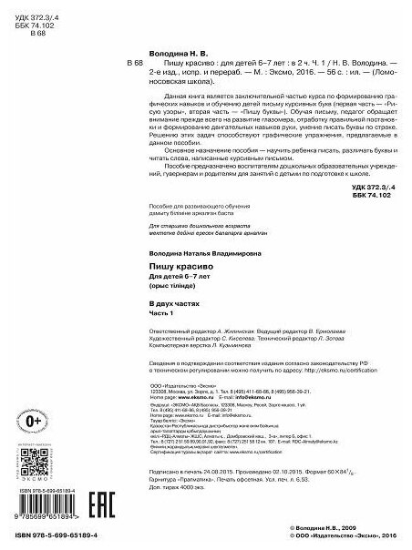 Сервис сравнения цен СкидкаГИД предлагает сравнить цены на товар «Книга: Пишу красиво. для детей 6-7 лет. В 2-х частях. Часть 1 (Володина Наталия Владимировна); Эксмодетство, 2021»