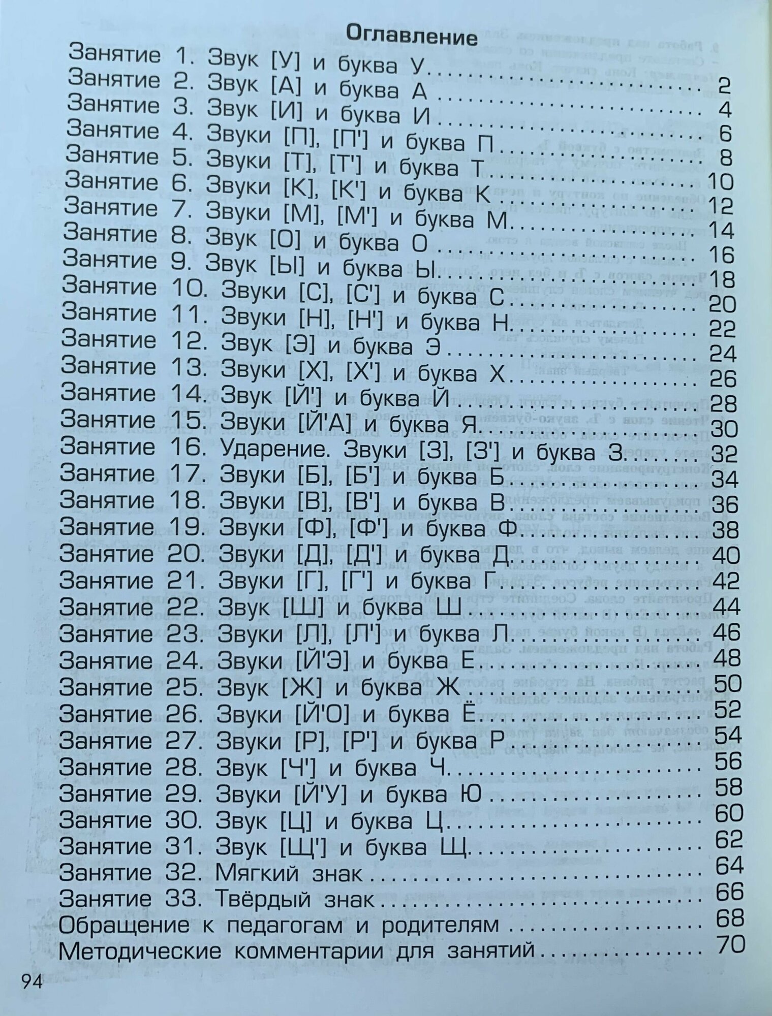 В книге 33 занятия, на каждое занятие отведено по 2 страницы. В конце книги подробные методические рекомендации по урокам, не надо отдельно покупать медодические рекомендации.