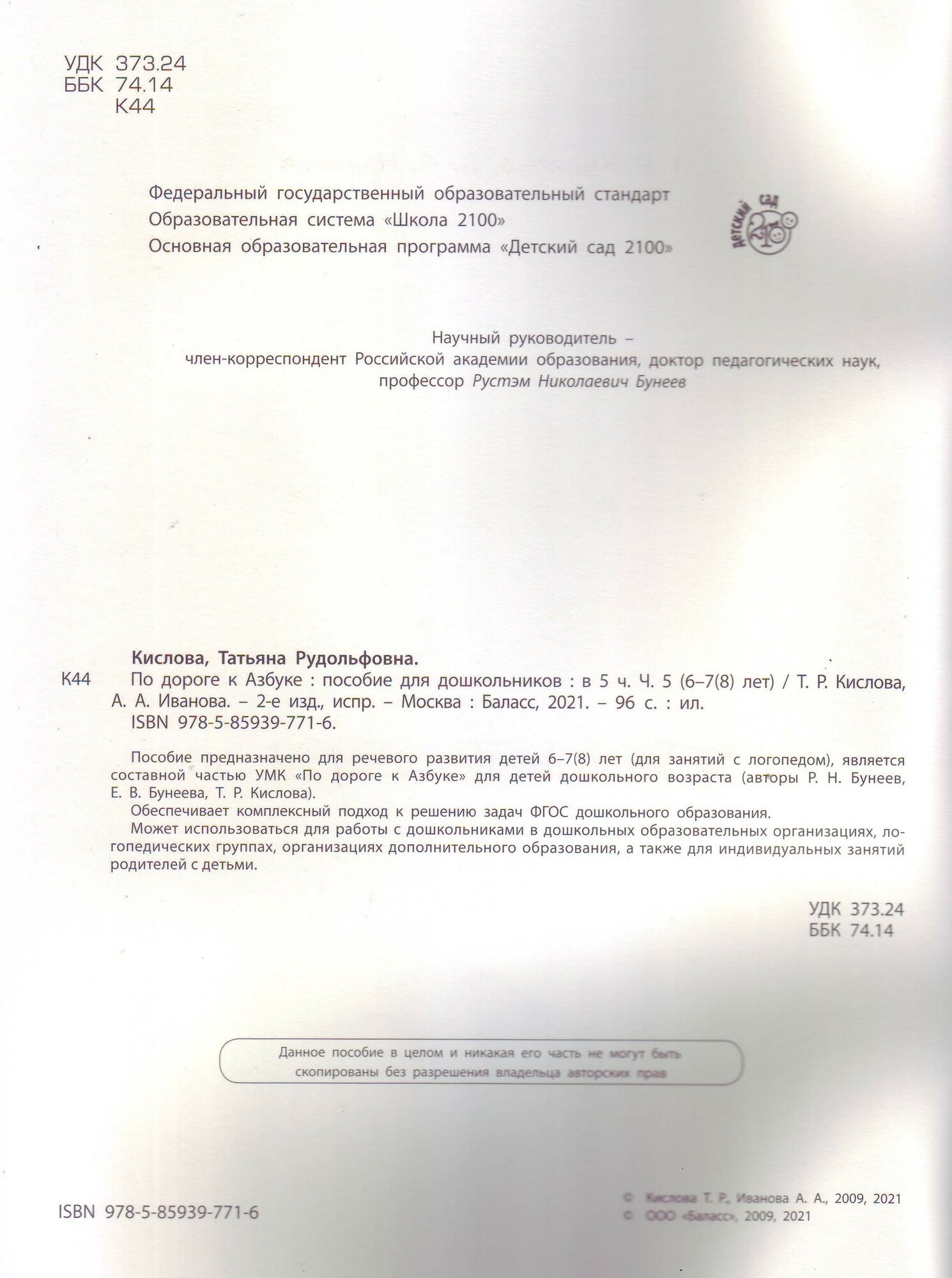 По дороге к Азбуке. Пособие по речевому развитию детей. В 5-ти частях. Часть 5 (Кислова Татьяна Рудольфовна, Иванова Алла Анатольевна); Баласс, 2018