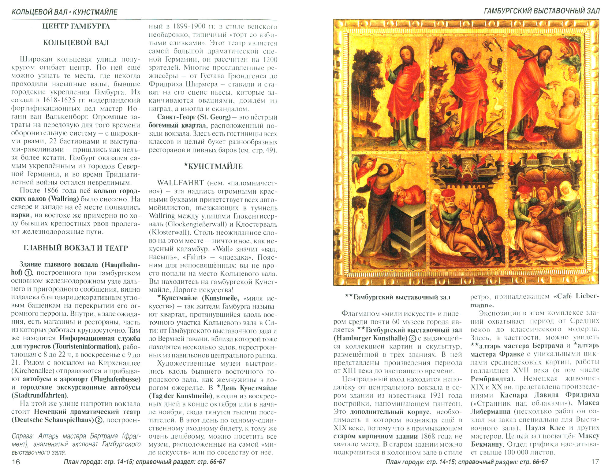 Исторический обзор приводит важнейшие события из истории Гамбурга. Все главные достопримечательности города перечислены в одном кратком списке с комментариями. Отдельные очерки посвящены лучшим местам для покупок и вечернего отдыха, а также особенностям гамбургской кухни.
