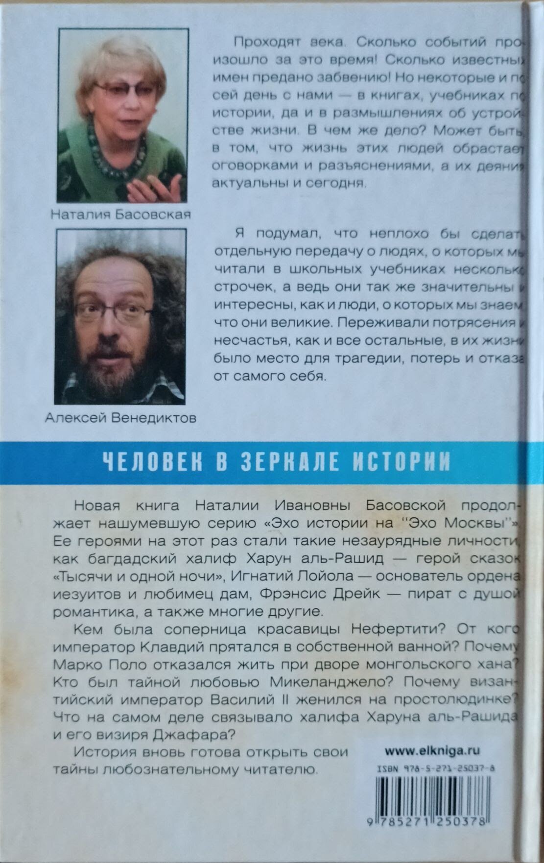 Новая книга Наталии Ивановны Басовской продолжает нашумевшую серию "Эхо истории на "Эхо Москвы". Ее героями на этот раз стали такие незаурядные личности, как багдадский халиф Харун аль-Рашид - герой сказок "Тысяча и одной ночи", Игнатий Лойола - основатель ордена иезуитов и любимец дам, Фрэнсис Дрейк - пират с душой романтика, а также многие другие.