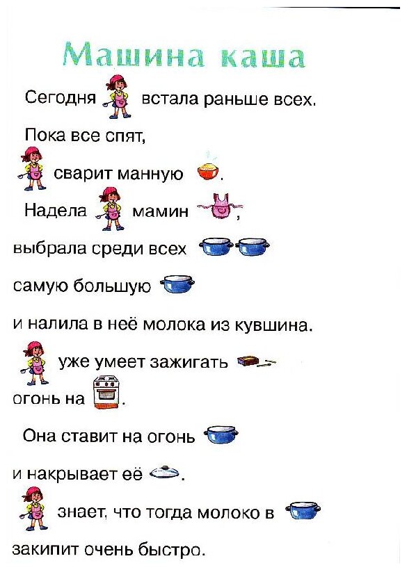 Чем интересна эта книга? А тем, что наблюдая за движением пальца по строчке ребенок начинает понимать, что значит "читать" т. е. проговаривать слова, которые состоят из букв. Проговаривая слова-картинки ребенок учится правильно соотносить их с зависимым словом, выбирает род, число, падеж, окончание и таким образом, расширяет свой словарный запас и развивает речь. А простые добрые истории, "прочитанные" самостоятельно дают ребенку стимул, научиться читать по-настоящему и узнать много интересного и увлекательного из мира книг.