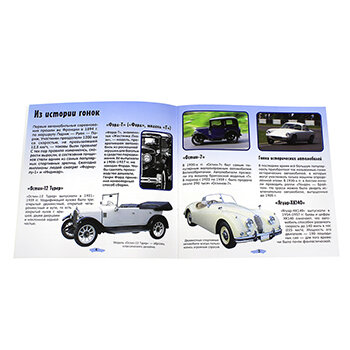 Книга не плохая, яркая, много отличных фото автомобилей прошлого и настоящего, именно это подкупает моего трехлетнего любителя автомобилей, а еще наклейки, много наклеек. Конечно для более взрослого ребенка будет интересен и сам текст, пусть не большой, но довольно содержательный и информативный.