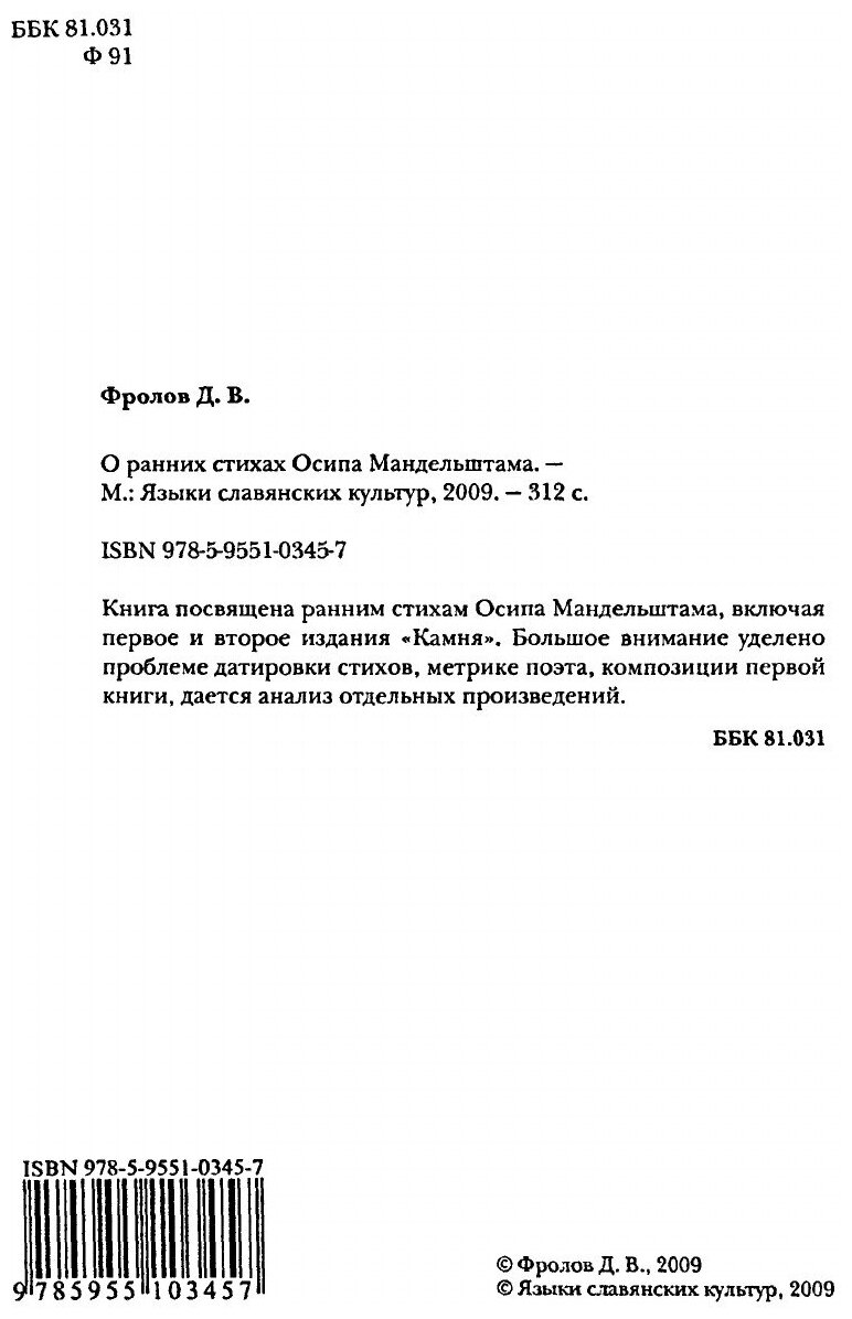 О ранних стихах Осипа Мандельштама (Д. В. Фролов); Языки Славянской Культуры, 2009