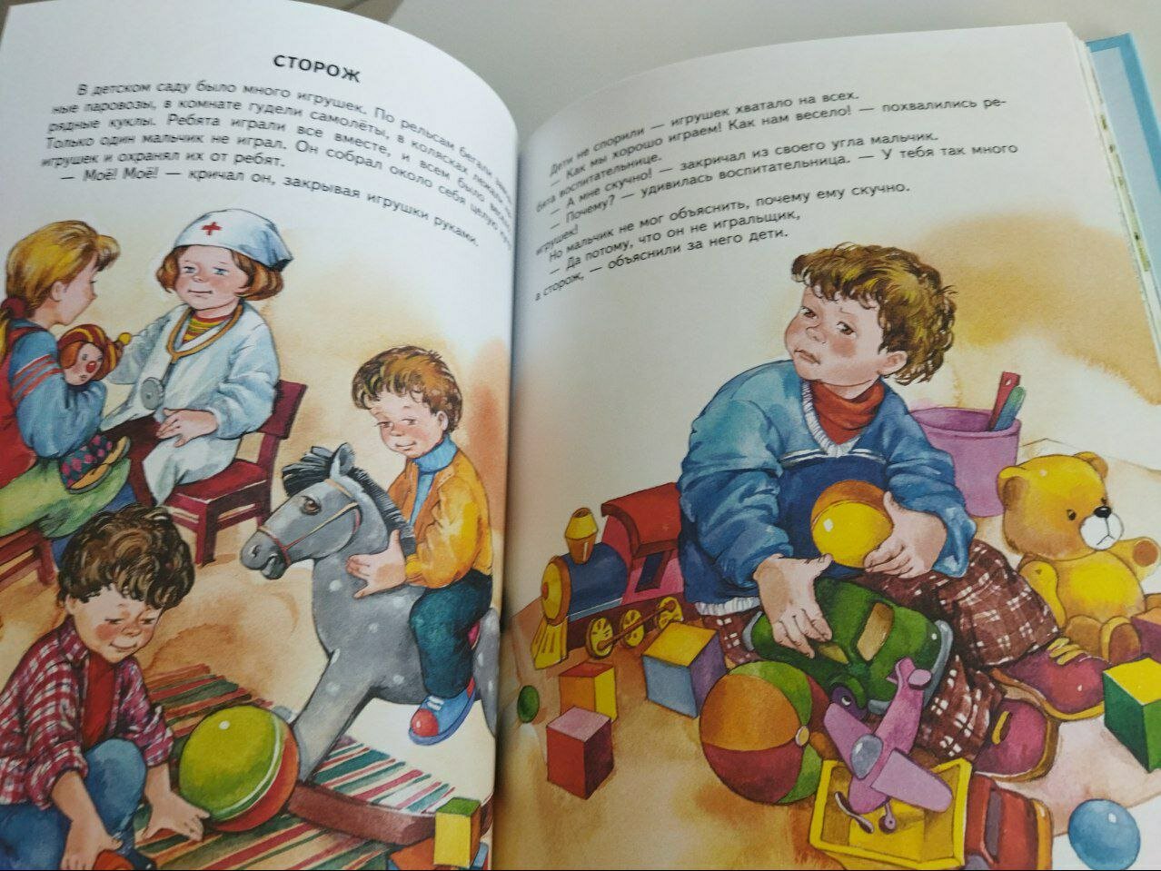 Купила дочке 3,5 лет. Книгой вцелом очень довольна, т.к. в нее вошло большое количество произведений Осеевой, о которых я даже и не догадывалась. А сказку про Машеньку и волшебную иголочку дочка просит перечитывать снова и снова. Да, дети на иллюстрациях получились страшненькие, но зато с эмоциями. А качество книги просто замечательное.