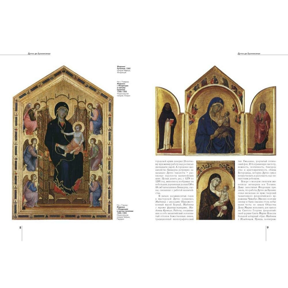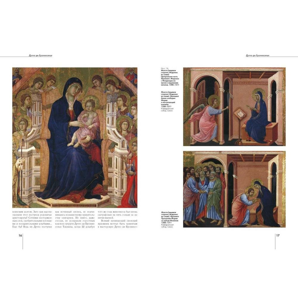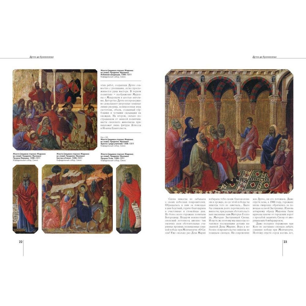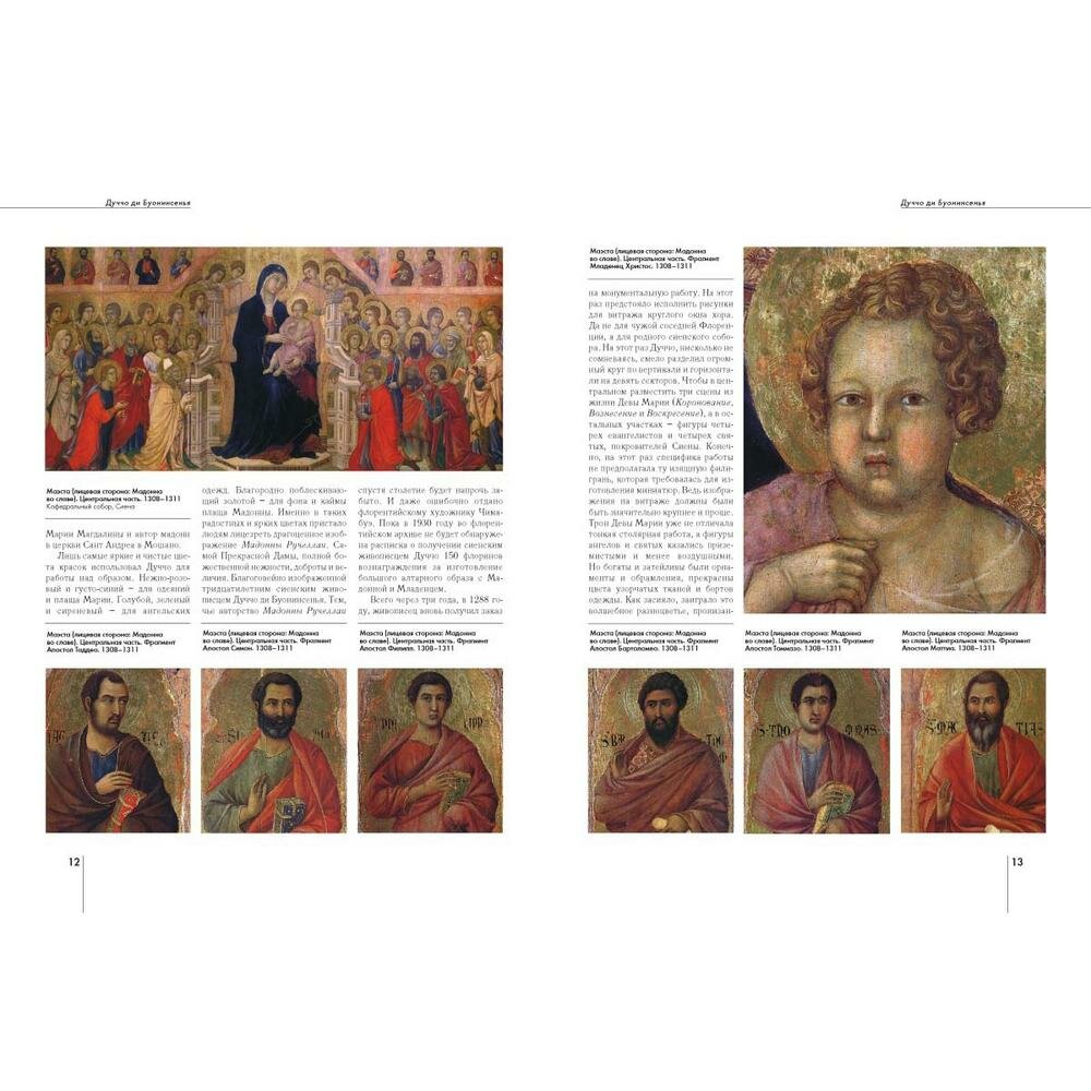 Картин великого Дуччо, уже при жизни носившего гордое звание "лучшего художника современности", нет в российских музеях. И биографических сведений о нем почти не сохранилось. Даже дату рождения искусствоведы смогли вычислить лишь приблизительно: по первому заказу, который получил молодой художник. А его мог получить лишь тот, кто достиг зрелого возраста и живописного мастерства. В настоящем издании собраны все известные сведения о биографии средневекового сиенского живописца, об истории создания большинства его картин и витражей. Альбом предназначен для широкого круга читателей, в том числе искусствоведов и студентов художественных вузов. Книга будет пользоваться спросом на выставках современного искусства в выставочных залах и галереях.