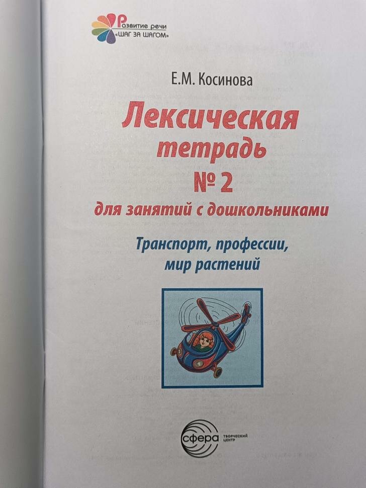 Лексическая тетрадь № 2 для занятий с дошкольниками: Транспорт профессии мир растений (Косинова Е.); Творческий центр Сфера Издательство, 2009