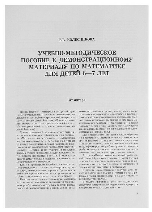 Демонстрационный материал предназначен для работы педагога с детьми 6-7 лет на занятиях по развитию математических представлений. Комплект разрезных карточек разработан в соответствии с содержанием книги "Математика для дошкольников 6-7 лет" и ра6очей тетради "Я считаю до двадцати". Материал карточек соответствует содержанию раздела "Развитие математических представлений" в комплексных программах "Истоки", "Радуга", "Детство" и т.д. Представлены следующие разделы: количество и счет, геометрические фигуры, величина, ориентировка во времени, ориентировка в пространстве, логические задачи, развитие внимания. Рекомендуется педагогам дошкольных о6разовательных учреждений, гувернерам, родителям для занятий с детьми.