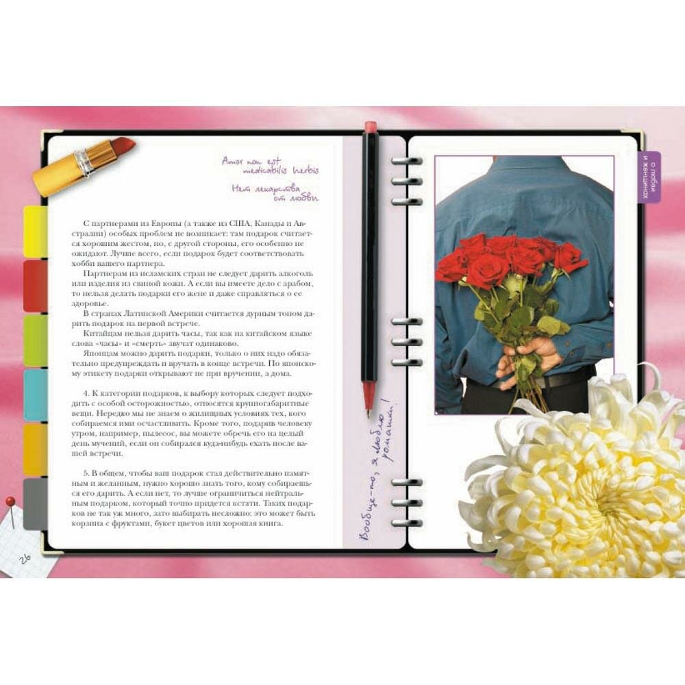 Отличное подарочное издание! Твердый переплет, мелованная бумага, со вкусом подобранные иллюстрации, стильное оформление... Список можно продолжать очень долго! "Эффект страниц органайзера" делает оформление более непринужденным,можно сказать молодежным :) Но классические книжные страницы делают издание приятным и для людей боле консервативного взгляда. Книга содержит огромное количество стихов, мудрых мыслей, афоризмов, шуток и анекдотов на все случаи жизни. Теперь Ваш мужчина в любой ситуации сможет блеснуть остроумием и показать высокий уровень эрудиции, цитируя по памяти Конфуция, Иоанна Златоуста, Ключевского, Сенеку, Лермонтова, Екатерину Великую... А главное Он всегда в эти моменты будет вспоминать Вас. Ведь самый лучший подарок - подаренный с любовью...! Одаривайте своих Мужчин любовью, вниманием, заботой