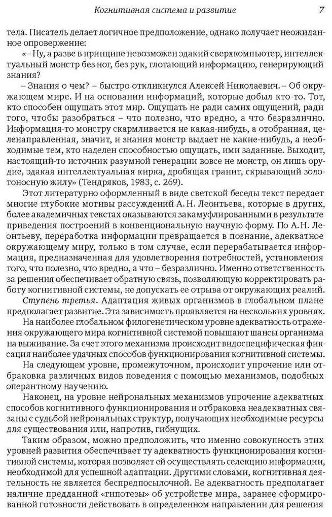 Когнитивное развитие в книге рассмотрено во многих планах. Это фило- и онтогенез физиологической базы когниций, развитие познавательной сферы ребенка, речи, языка, знаний в науке и многое другое. Обсуждаются конкретные проблемы, встающие сегодня перед когнитивной наукой в разных областях, но также и общетеоретические вопросы принципов описания развивающихся систем, развития как условия адекватности познания, единства организации фило- и онтогенетического развития и обучения, детерминации развития и т.д. Проблема развития исследуется в междисциплинарном аспекте - представлены биологический, психологический, лингвистический, философский и иные подходы. Настоящее издание отражает современное состояние когнитивной науки и включает наиболее интересные результаты исследований, выполненных в последние годы в России. Предназначена для студентов, аспирантов, специалистов в области психологии, лингвистики, компьютерных наук и в смежных областях.