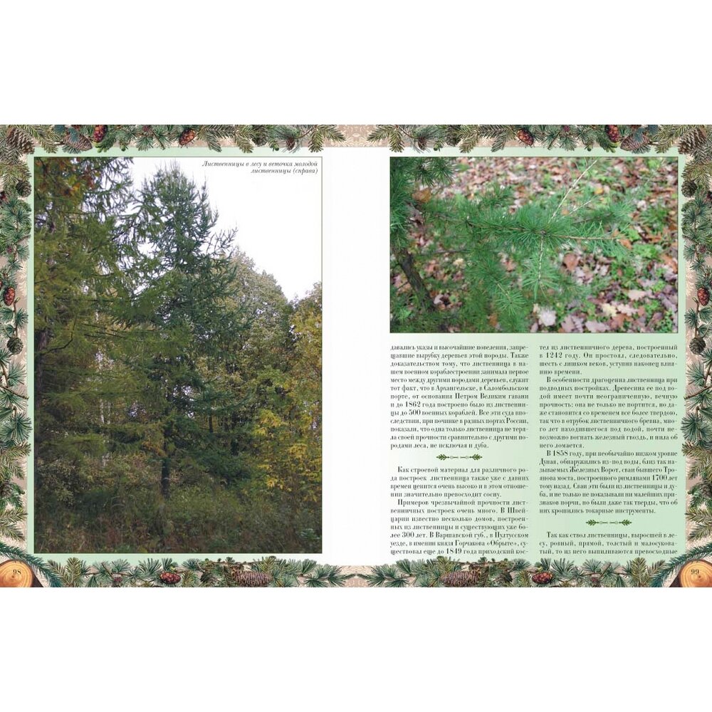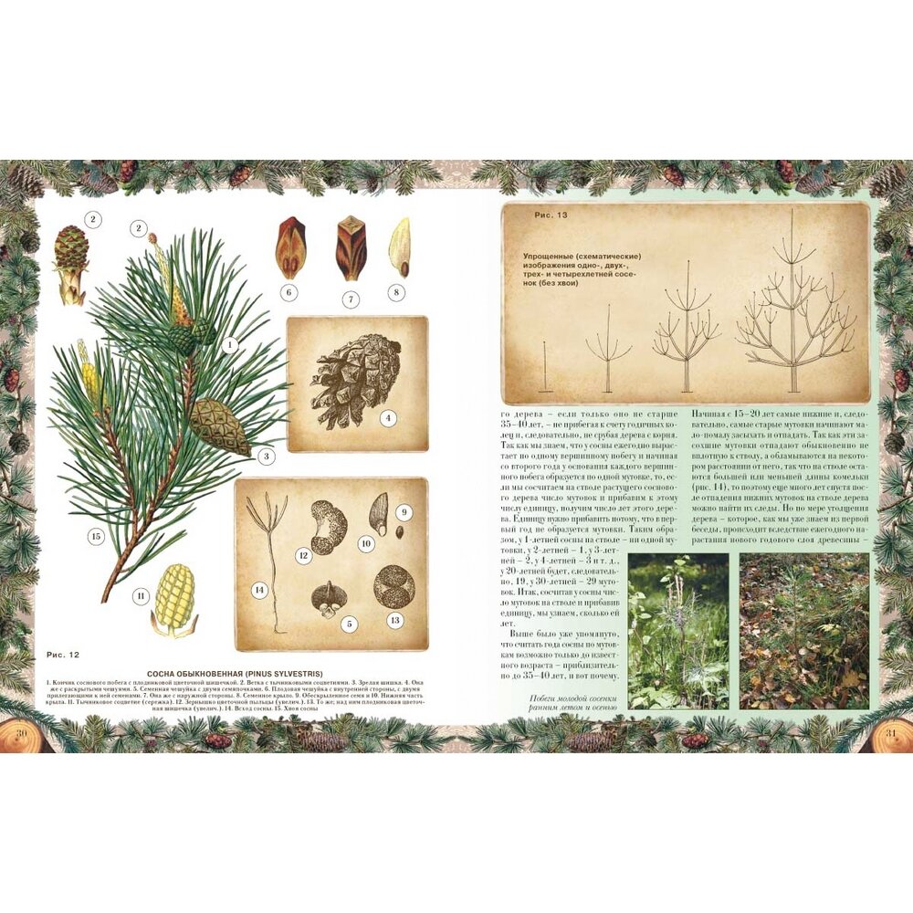 Оформление книги выше всяких похвал. Очень оживляют станицы рамочки из веточек с плодами хвойных (в первой части книги) и лиственных (во второй ее части) деревьев. Поясняющие рисунки удобно расположены в тексте. Шрифт хорошо читаемый. Бумага слегка тонированная. Книгу очень приятно держать в руках, хочется ее листать и рассматривать.