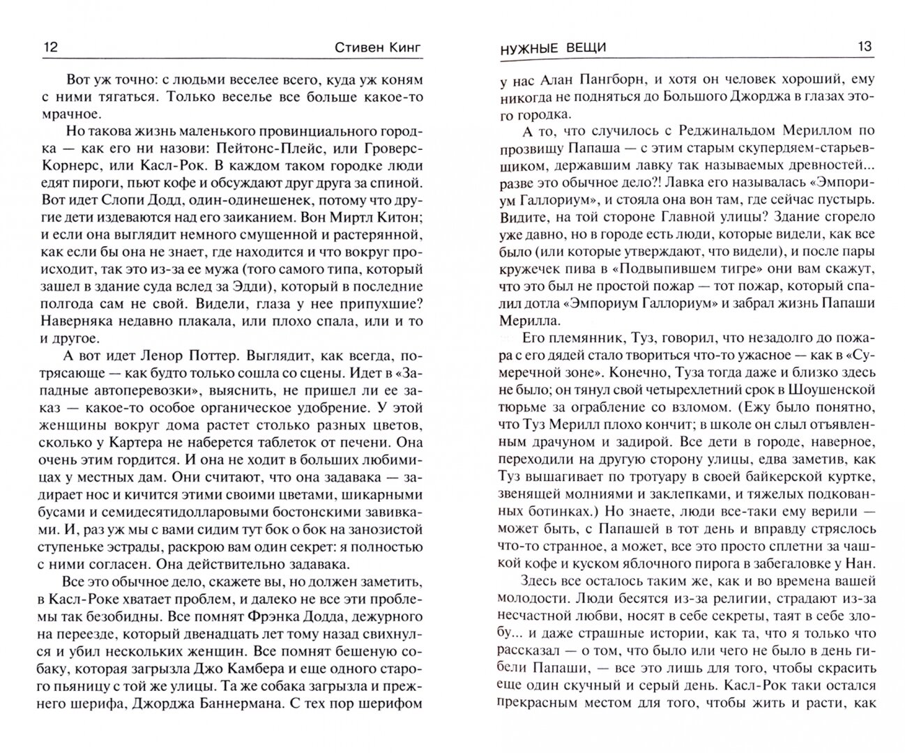 Первый перевод романа (под названием "Самое необходимое", по-моему, более элегантный перевод оригинального Needfull things) от Ф.Б.Сарнова был, на мой взгляд, более удачным, чем нынешняя версия от Аркелова. Кстати, довольно странно, что АСТ заказало новый перевод такого толстого романа - 832 страницы сопоставимы с "Противостоянием", но это был практически эпос.