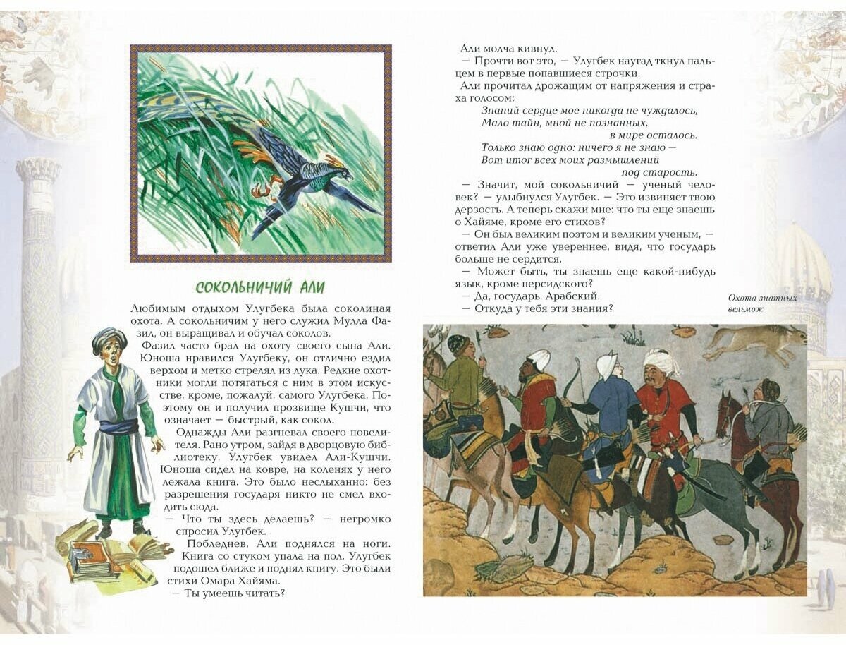 Сорок лет с 1409 по 1449 г. Улугбек управлял страной. Интересные исторические сведения в книге повествуют о том как под управлением Улугбека Самарканд стал одним из мировых центров науки Средневековья. В Самарканде первой половины 15-го столетия, вокруг Улугбека образовалась целая научная школа, объединявшая видных астрономов и математиков. Улугбек общался с видными историками, врачевателями, поэтами своего времени, постоянно сам стремился к знаниям, верил во власть человеческого ума, и во власть науки. Главный герой книги известен в истории также как создатель уникальной для того времени обсерватории.