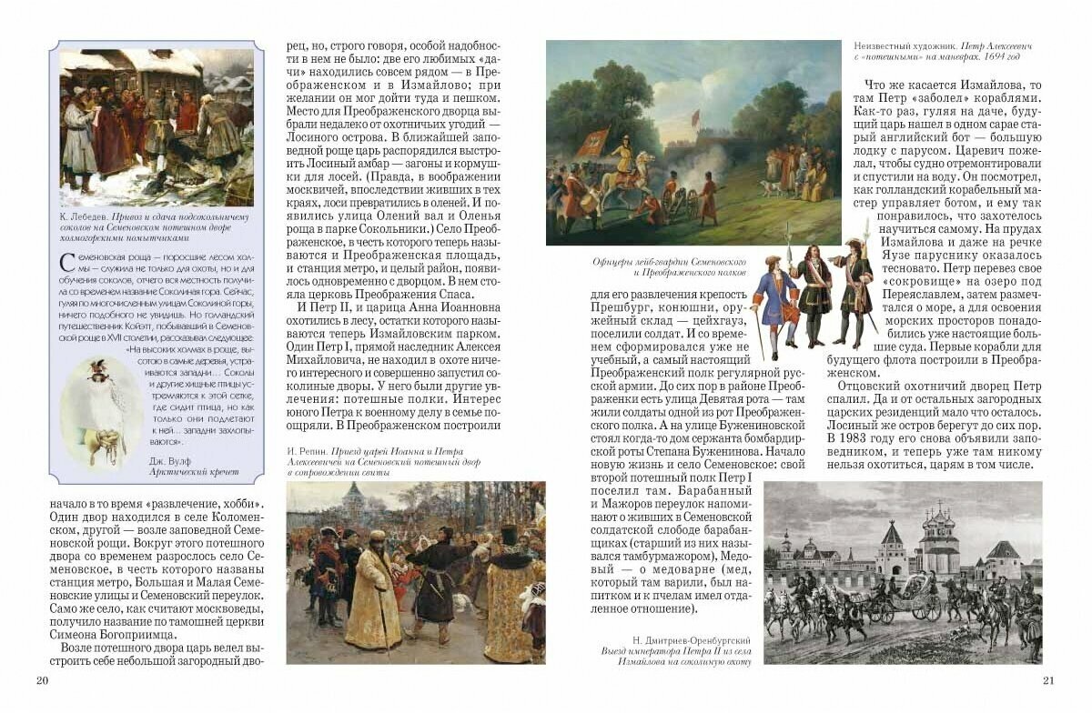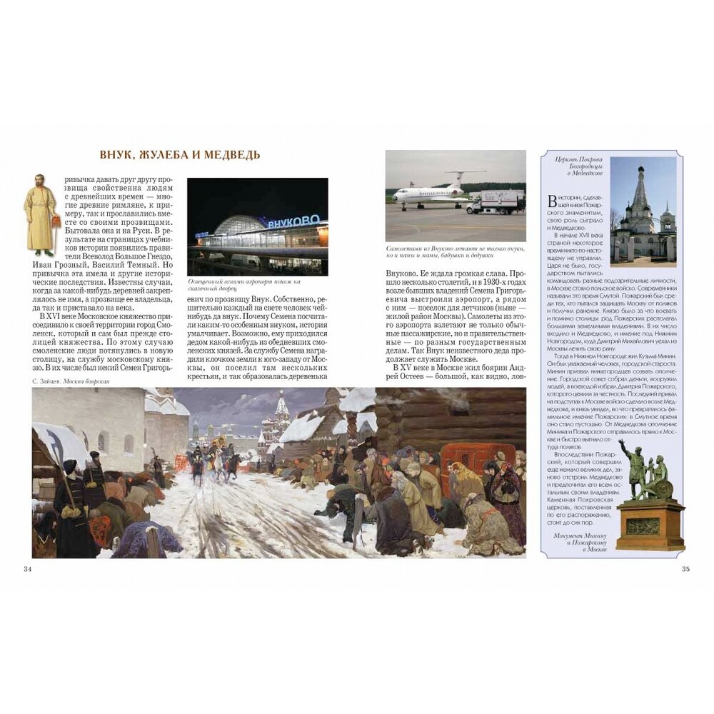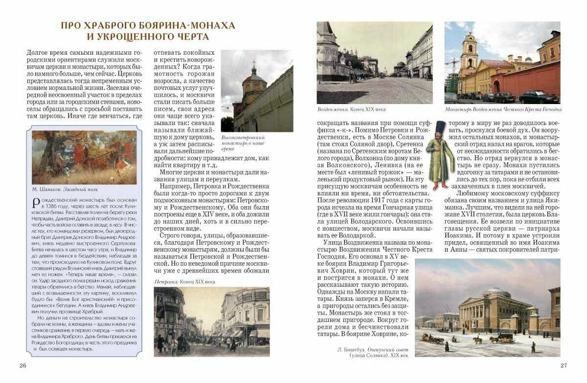 Еще одна книга из серии "История России" предлагает совершить прогулку по улицам Москвы. Оформление у книги стандартное для серии: твердый лаковый переплет, бумага офсетная, иллюстрации приведены на каждом развороте.