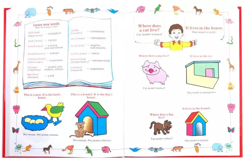 В этом издании весь материал сгруппирован по основным темам, и обучение построено таким образом, что, переходя от темы к теме, пополняется словарный запас, появляются навыки составления все более сложных предложений. Ребенок учится создавать предложения как в вопросительной, так и в утвердительной форме, учится азам грамматики совершенно ненавязчиво для того, чтобы в предложениях правильно соблюдался порядок слов.
