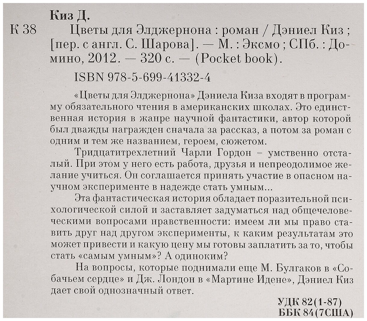 Книга: Цветы для Элджернона (Киз Дэниел); Эксмо-Пресс, 2021