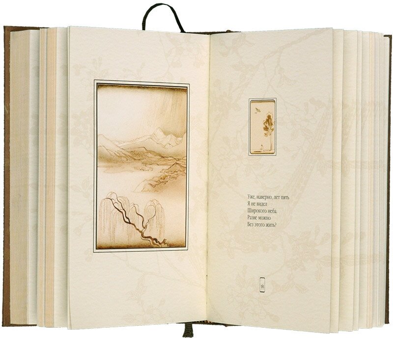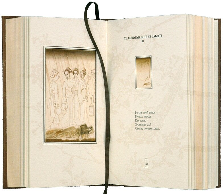 Удивительной красоты книга, которую должен иметь в коллекции каждый букинист! Матовая бумага, шёлковая обложка и короб, обшитый шёлком, позолота. Эту книгу не просто приятно читать и держать в руках, она переносит вас в какое-то сказочное состояние, которое окрашивает мир в совершенно иные краски.